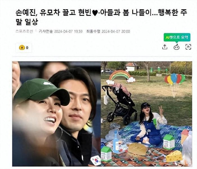韩国知名女星,演员孙艺珍分享了她的周末日常,公开了周末快乐野餐的照片。 4月7日,孙艺珍在个人账户上发布了一张自己在公园野餐的照片。照片中,孙艺珍铺着垫子享受春天的天气,和家人一起去郊游,孙艺珍身穿蓝色工装裤,头戴黑色棒球帽,戴着墨镜,显得休闲,最引人注目的部分是孙艺珍身后的婴儿车。 ![]() 孙艺珍在镜头前画着V字,自然地展现了随和的魅力。婴儿车里也有孙艺珍的狗,看来孙艺珍和玄彬、儿子以及他们的狗等家人一起度过了一段愉快的时光。孙艺珍坐在垫子上,旁边放着婴儿车,心情愉快。孙艺珍写道:“大家周末过得愉快吗?明天又开始了!加油”。 ![]() 对此,网友们也纷纷留言表示,“看姐姐分享日常真的觉得她过得好开心,好幸福”,“他俩的狗狗,Kitty,大女儿,幸福的一家四口”,“一家子去春游好开心”,“孙姐最近心情很好哟,色彩斑斓的花花”,“周末也该有新开始,幸福之家,真是令人艳羡,不愧是我嗑的最完美的CP” ![]() “粉红色的小车车是妈咪喜欢的颜色吧”,“这是比阳光还明媚的脸,这是幸福的一家四口啊”,“哈哈孙艺珍眼镜里面就看见老公的大头”,“胖豆是不是也穿背带裤,亲子装走起”,“墨镜里的一切给大家扒出来!”,“墨镜里的大头哈哈”等等。 ![]() 与此同时,玄彬和孙艺珍于2022年3月结婚。两人于同年11月生下儿子,婚后生活幸福美满。最近,孙艺珍和玄彬一起出现在首尔高尺巨蛋举行的“MLB世界巡回赛首尔系列赛2024”洛杉矶道奇队与圣地亚哥教士队的比赛中,引起了韩国网友们的关注。对于,韩国知名女星,演员孙艺珍分享周末日常,推着婴儿车与玄彬春游,享受快乐野餐,大家怎么看呢? |