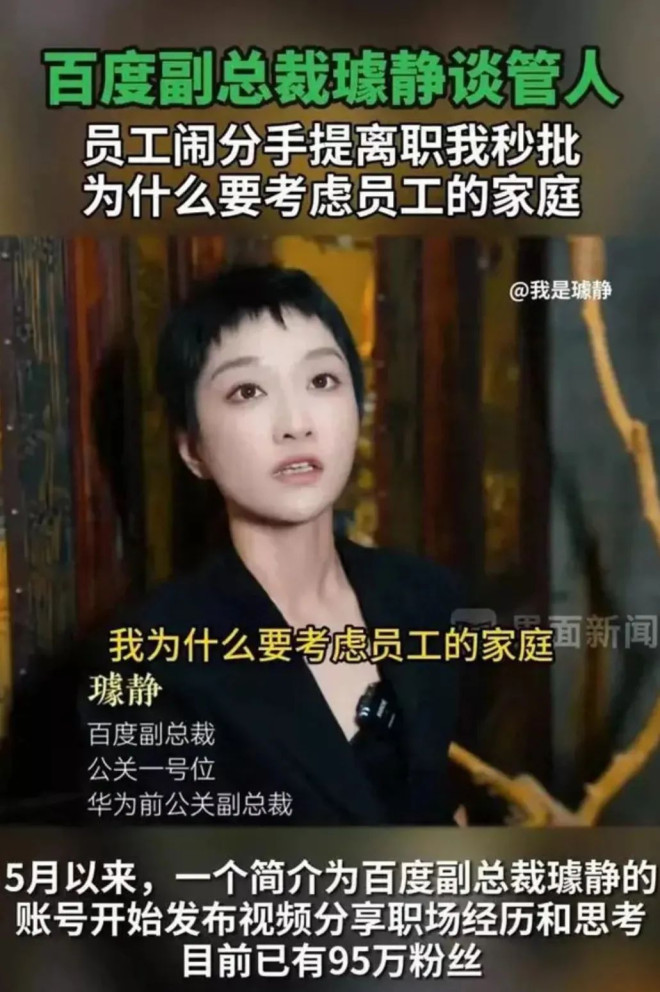 说说璩静,最新的消息,她已经从百度离职。 昨晚还在道歉,今天离职,果然秒批。 璩静作为百度的公关副总裁,亲自下场做ip,短短几天完成了从出道到塌房的全过程。 在那个让她一夜爆火的视频中,她提到此前跟下属连续出差50天的事,她说: “我比你大十几20岁我没有累,我还有两个孩子我没觉得苦,你有什么资格跟我说你老公受不了了需要你回去,你要回去就回去,以后升职及涨薪的时候不要来找我,你男朋友打电话跟你要分手,跟我有什么关系?” “可以辞职呀,我秒批。我为什么要考虑员工的家庭,我又不是她的婆婆,我要考虑的是,她能不能给我交付结果。我们的关系,就是雇佣关系。” 这个言论引起了巨大的争议。 她说了这么多,无非就是想表达一个早就烂大街的观点—— 在她团队里,没有人文关怀,一切看业绩说话。而且她的要求会高,能接受就做,不能接受就趁早离开,她没有义务关心员工的个人感情生活和家庭。 为啥说这种观点烂大街,因为这就是典型的狼性文化,很多公司就是这么认为,也是这么做的。理由很简单,你不做有的是人做。 但是这种事儿,就属于典型的,你可以这么做,也可以私下这么说,但是你公开这么说,还拍成短视频大肆宣扬,那就不对了。 ![]() ![]() 广大牛马在公司里忍气吞声已经很难受了,在互联网上不火力全开喷死你才怪。 更何况,璩静还是百度的公关副总裁,责任是对外宣传,你不标榜自己公司积极的价值观,反而搞一些负面言论,把百度拖进了泥潭,市值一天狂跌60亿。 百度的公关一号位,亲手创造了百度公关危机,真是公关届的小奉先,主打一个灭爸。 今天凌晨,璩静扛不住压力,在朋友圈道歉称,发布短视频之前没有征得公司的同意,不符合相关流程,不代表百度立场,特此道歉和澄清。 ![]() 整体来看,这是一封避重就轻的道歉信。 大半夜的发个道歉信,人都休息了,而且还发在朋友圈,给谁看呢? 虽然璩静选择和百度切割,表示都是个人行为,不代表百度,但实际上此次事件已经过去了三天,连续登上微博热搜,基本上错过了危机公关的黄金时间。 她造成的争议,对百度的品牌造成了严重的伤害。 所以从她道歉开始,我就预感她离被开除不远了。 很多人道歉,不是因为他觉得自己错了,而是知道自己要死了。 至于璩静为何这么快翻车,其实根本原因在于,才不配位。 说简单点就是,无能。 翻看她的履历,毕业于外交学院,资源集中在政府部门/日报传媒,她之前在华为的岗位也是公共及政府事务部副总裁。 ![]() 百度挖她,其实是看重了她在央媒和政府关系能力及背景,而不是危机公关能力。 在舆情公关领域,她是个外行。 在这个前提下,你再看她干的事,就合乎逻辑了。 当一个不懂大众传播的人,被冠以公关副总的身份,犹如穿上了皇帝的新衣,下属不敢忤逆,高层还以为她有实力…… 她代表了一批互联网大厂“才不配位”领导的画像。 其实才不配位的领导多了,聪明的都在浑水摸鱼,只要把老板哄好就行了。 可璩静偏不,非要处处作妖,彰显自己的女王范。 就她说的那套下属辞职秒批的言论,看着很强势,但是,你能不批吗?你凭啥不批?这难道不是职场的正常手续吗? 秒批能说明啥?你不过就是个橡皮图章嘛。 然而她却表现得非常有霸气,非常有优越感,非常嗨,但其实完全就是自嗨。 这种自嗨,除了大厂给她带来的平台优势,还有她喜欢强行给自己加滤镜。 所以,别看她顶着百度副总裁、公关一号位这种title,但她的所作所为,都露出了才不配位。 更不用说在办公室拿数据线抽纸人、被华为前同事diss、被现下属举报的烂事了,德不配位感扑面而来。 ![]() 才和德都不行,还拼命把“道行太浅”往脸上贴,哪个老板会留她? 所以现在璩静辞职,秒批,真可谓报应不爽。 还是喜欢她最初桀骜不驯的样子。 |