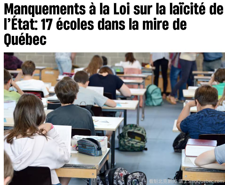 魁北克省教育部长将派出审查员前往17所涉嫌违反《国家世俗化法》的学校进行调查。 此举是由于接连收到多起有关学校未遵守世俗化法律的投诉,尤其是关于蒙特利尔Bedford小学的情况后引发的连锁反应。 该报告揭露蒙特利尔Bedford小学存在由 11 名教师(主要来自北非裔)造成的有毒氛围,此后,来自公民、教师和学校服务中心主任的投诉成倍增加。 这些投诉不仅涉及蒙特利尔的学校,还包括位于Laval、Longueuil、Outaouais、Capitale-Nationale地区以及Saguenay–Lac-Saint-Jean的其他学校。 此次审查的17所学校中,有10所为小学,7所为中学,其中三所(Saint-Pascal-Baylon、Bienville和La Voie)已在此前展开调查。 虽然此类投诉并不完全类似于Bedford小学的情况,但却涉及违反《国家世俗化法》的相关原则,包括国家与宗教的分离、国家的宗教中立、公民平等以及信仰自由等。 例如,一些民众投诉称,学校存在宗教符号的佩戴或其他不符合世俗精神的安排。 魁北克政府确认了投诉的有效性,随即决定派遣审查员进行核查,并提交报告。 教育部长的声明指出,这些审查的目的是“保护我们的学生”。 在Bedford小学事件曝光后,魁北克省长François Legault明确表示,政府将加强对学校世俗化的管理,以防止类似事件的发生。 他同时呼吁民众举报此类偏差。然而,Legault因拒绝支持停止对宗教私立学校的公共资金资助,受到反对党一致批评。 学校列表: CSS de la Capitale