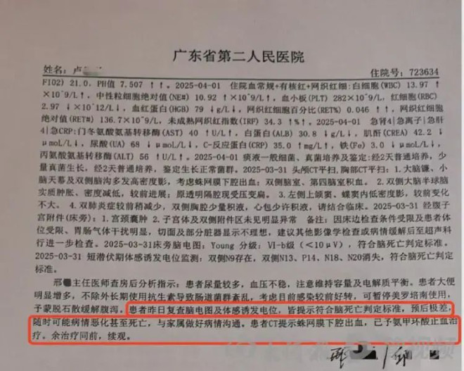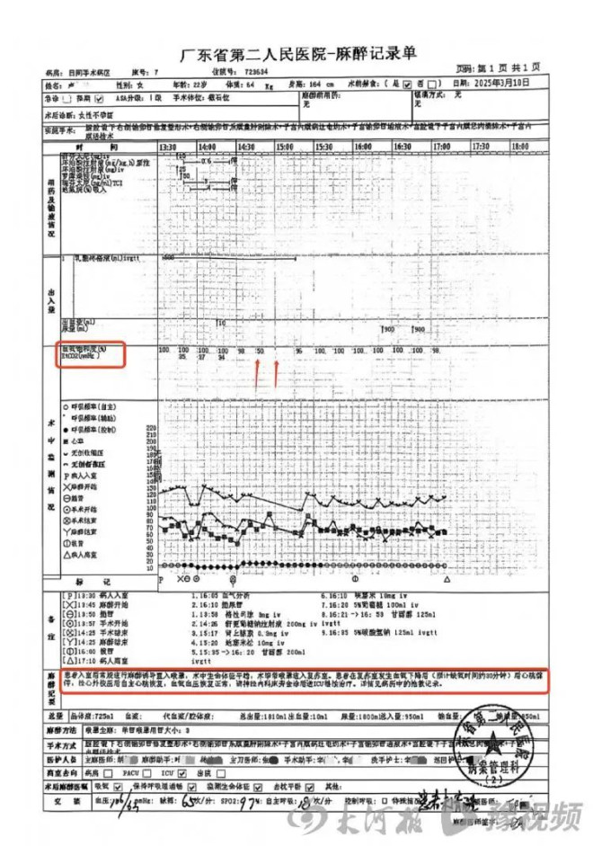 3月10日,汕头22岁的卢晓丹(化名)在广东省第二人民医院接受输卵管堵塞微创手术后,被推入复苏室等待全麻苏醒,却因长时间缺氧导致脑死亡。家属向大河报《看见》记者爆料称,复苏室医护人员未发现喉罩阻塞氧气供应,患者血氧骤降时,报警仪器报警,医护人员未及时处理,才造成的这次事故。 4月16日,院方接受记者采访时称事件原因仍在调查。目前,家属已向广州市海珠区卫生健康局提交医疗事故鉴定申请,要求医院追责并公开道歉。 缺氧30分钟:从手术顺利到意外脑死亡 4月16日,患者家属马先生接受《看见》记者采访时称,其嫂子卢晓丹和哥哥婚后原计划要个孩子,因查出输卵管堵塞,3月10日前往广东省第二人民医院琶洲院区进行微创手术。下午1点半,嫂子进手术室,2点半时,医生告知手术顺利,之后嫂子就被推入复苏室等待苏醒。复苏室是在手术室里面,家属进不去,患者由医院监护人员负责照顾。由于等待时间太久未见患者被推出,哥哥曾询问患者状态并希望进入照看,护士以“术后患者形象不是很雅观”为由拒绝患者丈夫进入。在焦急等待2个多小时后,噩耗传来。 “出来的医生告诉我们,患者口吐白沫、翻白眼,人在抽搐,需立即转入ICU,并未说明造成的原因。”马先生说,这时已是下午5点06分。 家属提供的麻醉记录单显示:患者入室后常规进行麻醉诱导置入喉罩,术中生命体征平稳,术毕戴喉罩进入复苏室。患者在复苏室发生血氧下降后(预计缺氧时间约30分钟)心脏骤停,经心外按压后自主心跳恢复,血氧血压恢复正常,请神经内科会诊后送ICU继续治疗。 记者从记录单上发现,患者血氧饱和度在14:45从之前的98%降到50%,在15:00数据缺失,直到15:15,血氧饱和度恢复为96%,这段血氧值不正常时间为30分钟。(注:人体动脉血氧饱和度正常值:95%-98%) ![]() 图为麻醉记录单 马先生告诉《看见》记者,嫂子是做美甲工作的,手术前身体健康,对麻药不过敏。其提供的入院记录术前陈述显示,患者自述无既往病史,父母兄弟姐妹无遗传性、免疫性和精神性家族病史。 “从3月10日算起到现在已经38天了,现在嫂子还在ICU,仍靠呼吸机维持心跳。”马先生说。 家属提供的4月1日病例显示:患者昨日复查脑电图及体感诱发电位,皆提示符合脑死亡判定标准,预后极差,随时可能病情恶化甚至死亡…… ![]() 4月1日病例显示,患者随时可能病情恶化甚至死亡 录音曝光:医院初步判断喉罩移位导致缺氧 家属提供了一段与医院交涉的录音,录音中一位麻醉科主任张医生说,患者送到复苏室后,有一位一线医生全程陪在患者身旁。可能因为喉罩的移位导致患者呼吸道受阻,氧气没能有效送达患者进行供氧,患者自主呼吸没有恢复,这个过程有可能会窒息和缺氧。家属质问血氧下降后,监护仪应该报警的,为何医务人员不知道?张医生回答,因为监护医生观察不到位,他在现场但未能及时发现这个问题,对报警的警惕性不够,对此院方也是痛心疾首。 马先生说,他不清楚涉事的医护人员是否具备相关资质。医院也没有告知,这名责任医护当时在干什么,导致没有重视监护仪发出的报警,而责任医护至今没有出来道歉。至于复苏室里的监控,院方称去年就坏了。 “3月17日,医院告诉我们,有个医生已经停职在家反省了,但我们不知他的姓名。”马先生说。 “现在嫂子没有意识,两个家庭都在陪护,每天有半个小时的探视时间,其他时间都是在煎熬中。我们向海珠区卫生健康局提交了医疗事故鉴定的申请资料,卫生健康局称医院方还没有上报材料。”马先生说,家属的诉求是希望医院正式道歉,并严肃追责。 “我们特意从汕头到这家省级三甲医院就医,就是信任它的专业水平,没想到竟因低级失误致人脑死亡。”马先生痛心地说。 ![]() 卢晓丹生活照(家属提供) 医院回应:患者确认脑死亡,原因还在调查 4月16日下午,《看见》记者分别致电广东省第二人民医院医患科和纪委、监察室,询问患者卢晓丹脑死亡一事,相关人员表示了解情况后再回复。 4月16日晚,一位医患科科长回复《看见》记者,他们正在按照医疗纠纷的原则进行处理,目前患者仍在进行救治。当记者询问是医疗纠纷还是医疗事故时,其表示还在调查。 对“报警仪报警但未被察觉”及医疗监护人员是否存在失职的问题,这位科长表示还在积极调查,涉事医护人员有相关资质,是依法执业,并否认是实习生等情况存在。 此外,该科长确认患者卢晓丹处于脑死亡状态。在回答记者询问是否有苏醒希望时,其称需要医学专业的评判,但是医院还在尽最大努力进行救治,包括寻找外部专家的支持。 4月16日,《看见》记者致电广州市海珠区卫生健康局医政科,工作人员表示要记者联系办公室,随后又改口称不接受采访。 ![]() 患者术前与丈夫的聊天记录 地方规范要求:麻醉复苏室须15分钟监测一次 一位麻醉科业内人士告诉《看见》记者,全麻病人在回到病房之前确实需要在复苏室进行苏醒,为防止交叉感染,确保患者的安全和隐私,家属一般不被允许进入。在复苏室的医护人员具有看护和治疗的职责,并做好记录。目前国家层面尚未出台全国统一的《麻醉复苏管理规范》,但部分地方和医疗机构制定了相关标准或管理制度。 以广西壮族自治区2025年2月1日实施的地方标准《全麻手术患者复苏管理规范》为例,其要求麻醉复苏室(PACU)医生需具备麻醉或重症执业资格,护士需通过专业