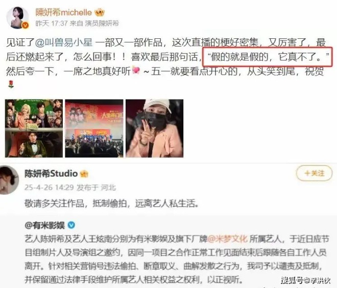 4月26日,知名狗仔张小寒拍到了陈妍希和一名平头帅哥深夜聚餐的照片,“陈妍希新恋情曝光”的词条瞬间登上了微博热搜,引发了许多网友的热议。 ![]() 从照片来看男方的眉眼与陈妍希的前夫陈晓有一些相似,于是不少网友感慨道:这难道是在玩宛宛类卿的把戏吗? 要知道,陈晓和陈妍希刚离婚才不到三个月,虽然两人近些年一直有婚变的传闻,但他们这段婚姻却是在今年的2月18日才彻底落下帷幕。 ![]() 昔日爱侣从形影不离走向分崩离析,着实令不少网友感到惋惜。 如今两人的离婚事件刚刚平息,陈妍希便被拍到和“新男友”同游的照片,照片中的这个男人有着和陈晓如出一辙的内双眼睛,这也令不少营销号提笔编写了一大堆狗血故事。 ![]() 根据网友的爆料,陈妍希这次的绯闻男友是一位比她小19岁的演艺圈新人。巨大的年龄差吸引了不少人的眼球,一些网友也闻风而来,对着陈妍希贴脸开大。 有人认为她的“绯闻体质”又故态复萌,也有人嘲笑她老牛吃嫩草。 ![]() 根据营销号的断章取义,使得陈妍希又一次陷入到了绯闻的漩涡之中无法自拔。 从陈妍希出道以来,便一直绯闻不断,一张“初恋脸 ”不仅吸引了很多男粉,也一跃成为了娱乐小报上的常客。 ![]() 也许正是因为这些花边,才令不少网友在这次事件曝光后跟风讨伐起了这位“绯闻女王”。 许多网友认为苍蝇不叮无缝的蛋,陈妍希和娱乐圈很多男艺人的关系都很好,在异性交往上总被诟病。虽然她一向秉持着“身正不怕影子斜”的理念,但舆论的风浪实在太大。 ![]() 不过每次有绯闻出来时,陈妍希都不紧不慢,始终保持着自己的节奏。 这次也不例外,对于这次的绯闻,陈妍希公司首先在微博贴出一张带着公章的声明,上面是一张艺人签约的告示,白纸黑字上写着“艺人王炫南系本公司签约演员”,明明白白地解释了陈妍希和王炫南之间的关系,没有所谓的恋情,不过是普通同事关系。 ![]() 而他们之间的这顿饭不过是在庆祝签约的一次工作聚餐,并不是所谓的约会。 陈妍希工作室在声明末尾也晒出了餐费发票,有力地回击了网友们的质疑。 ![]() 在4月26日,陈妍希本人也出面回应,在宣传好友易小星的电影《一席之地》的同时,也用一句“真的永远假不了,假的永远真不了”借机澄清眼下莫须有的流言。 ![]() 其实,网友们的抨击对刚离婚的陈妍希来说也是另一重打击,虽然她回应得云淡风轻,但上段感情还是花光了她太多的力气。 虽然两人之间的感情一直备受外界的质疑,但没有人怀疑他们曾深爱过,毕竟婚礼上的“头纱吻”还历历在目,陈晓那句“你好像我老婆”也感动了不少人。 ![]() 曾经沉浸在婚姻里的陈妍希每当提到陈晓的名字,脸上都会露出甜蜜的笑容。 比起不愿在公众场合提起自己感情生活的陈晓来说,陈妍希总是乐此不疲地在镜头面前秀着恩爱,但不知道从什么时候开始,曾经那段刻骨铭心的爱情成为了陈妍希的“独角戏”。 ![]() 如今的陈妍希刚从婚姻的阴霾走出来,便又跌入了舆论的漩涡。 当她用电影里那句“假的永远真不了”来自证时,娱乐圈又一次上演了三人成虎的戏码。 ![]() 而这条营销号用来博眼球的文章,也令广大网民对陈妍希进行了一轮又一轮的道德审判,两人离婚声明中的那句“聚少离多”也被营销号反复解读,如今的她伤口还没愈合,便被跟风的网友们争相撒盐。 ![]() 从陈妍希晒出的视频里,网友们发现她的无名指上居然还戴着婚戒,仿佛还没有释怀。 但婚姻的触礁并没有令陈妍希就此消沉,她反而更加频繁地出现在了公众面前,仿佛在用工作填补生活的空缺。 ![]() 这段时间,陈妍希的新戏《狙击蝴蝶》刚刚杀青,主演的电视剧《亲爱的仇敌》也在热播,看起来她已经重振旗鼓开始搞事业了。 ![]() 粉丝们也为这样的陈妍希感到开心,他们希望她能够早日从上一段感情中走出来,去拥抱新的生活。毕竟爱情诚可贵,事业价更高,与其在爱情里做别人小公主,不如成为自己的大女主。 |