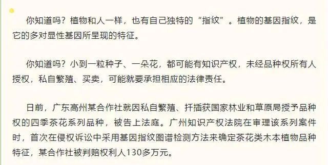 近日,河南驻马店,一花卉市场的崔先生反映,自己最近遇到一件事情,让人匪夷所思! 因为卖了2盆花,挣了40块钱,如今被索赔5万?法院传票已经到了手中。 ![]() 崔先生回忆,2024年4月,店里来了两位客人,买了两盆茶花,每盆100元,而正是这两盆花,被告知侵犯了别人的“植物新品种权”。 ![]() “我卖花这么多年,这花是不是被注册过专利,我不懂。但是从外形上看和平常卖的没什么区别。我不是种植的,也是从别的经销商处进货买的。批发的时候也不会有人说这花有专利?” 崔先生觉得自己有些委屈。 ![]() 随后,小莉联系崔先生上游的经销商,他回应:全国各地都在买东西,干这么多年,我也从来没听说过。就是正常的去买卖。这些货也是从广东进的。 ![]() 采访中,突然又一位商户告诉小莉,她也在上个月刚刚收到一张传票,也是类似的内容,“四季茶花侵权,要5万元!” 商户说,感觉很莫名其妙,是不是应该找源头? 随后,小莉联系到原告公司,广州棕科园艺开发有限公司工作人员回应:商户售卖的茶花品种是夏日七心,没有授权过这些商户们售卖,并不是针对个别人,而是整个市场。事情可以和解商户也可以去应诉。 ![]() 律师认为:事件中,经销商是商户们的货物来源方,商户作为销售,本身二者都具备盈利性质,需要提供货物的合法来源证明。比如,查验供货商的资质授权文件等。如果能证明,自身尽到了合理注意的义务,可以免除赔偿责任。 小编搜索发现,广州知识产权法院2023年4月曾发布《植物也有“指纹”!法院靠它判擅种者赔偿130多万》其中提到: ![]() ![]() 到底商户崔先生,或经销商有没有责任,又有多大的责任?相信法律会给出公正的判决,您对此事有什么看法? |