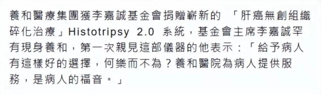 据港媒4月29日报道,96岁李嘉诚罕见现身香港养和医院,身穿蓝色防护服,近距离观测最新的抗癌仪器。 ![]() 照片中,李嘉诚坐在椅子上摸索着眼前的高精度仪器,一脸的笑容和好奇。 ![]() 李嘉诚在2018年退休后,一身工作装仍穿在身上,黑框眼镜也戴了好多年,而那款三千块的手表,已经不见踪影。 拍照的时候,李嘉诚笑出一脸皱纹,牙齿整洁白皙。 ![]() ![]() 李嘉诚当天还动手做了实验,一度成为围观对象,其后和院长握手,精神矍铄。亲手摸过仪器后表示“给予病人有这样好的选择,何乐而不为?养和医院为病人提供服务,是病人的福音。” ![]() 据悉,养和医院又有富豪医院之称,被大量富豪视为救命的地方,赌王何鸿燊昏迷后,就在养和医院“续命”了两三年,费用高达千万。 李嘉诚不仅捐出最新的抗肝癌仪器,还罕见现身参与实验,可见其对此十分重视。 值得一提的是,在李嘉诚现身的两天前,香港前首富李兆基的丧礼在殡仪馆举行,两人一直被传不和,李嘉诚没有出席丧礼,安排了两个儿子现身,打破了不和传闻。 ![]() ![]() ![]() 李兆基也有两个儿子,小儿子取名李家诚,与李嘉诚的名字同音,仅仅是这个细节,足以让AI写一部10万字的商战小说。 ![]() 据了解,李嘉诚上一次露面是在4月初,录视频探讨最新的抗癌仪器。 ![]() 彼时李嘉诚的女友周凯旋,到线下参与活动,配合他在活动上以视频方式露面,宣布与李显龙的妻子何晶达成合作,捐出这款抗癌仪器。 而何晶是淡马锡信托基金会主席,仍是新加坡手握大权的人物。 ![]() ![]() 当时李嘉诚的笑容有点怪,曾一度被质疑是AI视频。 ![]() |