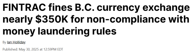 FINTRAC网站上公布了该违规行为的详细摘要。其中指出,调查人员发现三笔未申报的可疑交易,且这些交易的当事人此前已被Crystal Currency Exchange报告为可疑客户。 该摘要还提到,FINTRAC曾在2015年和2017年的审查中就该公司合规计划中存在的“缺陷”提出过警告,但在2022年再次检查时,未见任何改进。 FINTRAC首席执行官Sarah Paquet表示:“拿大的反洗钱制度是为了保护国民安全与经济稳定。我们将确保企业履行义务,必要时会果断出手。” 提醒在加拿大的华人朋友们:无论是开公司、经营换汇、地产交易,还是大额资金往来,都必须遵守加拿大反洗钱法规。不合规不仅仅是“走个形式”,一旦触线,后果严重。 |