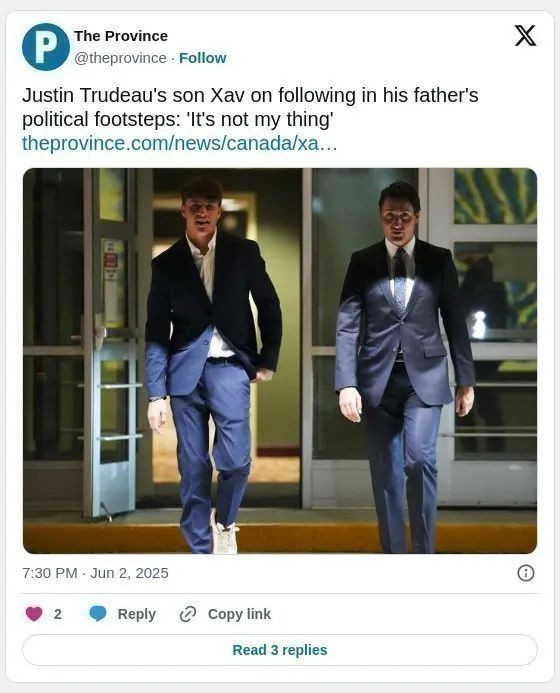 在今年早些时候开启音乐生涯之前,加拿大前总理贾斯汀·特鲁多的长子 Xav Trudeau 几乎从未引起公众的关注。 但随着他的首张个人专辑《Til the Nights Done》在 Spotify 上的点击量突破 10 万次,在 YouTube 上的点击量突破 17 万次,Xav 开始引起公众的关注。 ![]() 然而,网友的反应并不总是积极的。 ![]() 这位 17 岁的 R&B 歌手兼说唱歌手在多伦多娱乐播客《The Brandon Gonez Show》的一次访谈中承认道:“当我开始发行音乐的时候……我在社交媒体上招致了很多人对我的仇恨,就因为我爸爸的身份”。 ![]() 他表示:“如果你不喜欢这音乐,就继续往下看吧。你想吐槽就吐槽,这只会帮我提高算法。” ![]() Youtube 视频网址: https://www.youtube.com/watch?v=XVcWAkb6NaI 在父亲的三届任期内,Xav 从一个小男孩成长为一个年轻人。他说,他很熟悉那些伴随家人的负面情绪,但他已经培养出了屏蔽这一切的能力。 ![]() 他在访谈中也试图澄清自己未来的政治抱负。 他自己也谈到了这个问题:“我亲眼目睹了我父亲所做的一切,以及他所做出的牺牲,这对我来说真的不值得。他做得很好,只是这不适合我。” ![]() Gonez访谈主持人也指,30年前当被问及是否会追随父亲、前总理皮埃尔·特鲁多的脚步时,年轻的特鲁多也曾说过类似的话。 1995年,时年23岁的特鲁多在接受CTV新闻采访时表示,这“永远”不会发生。13年后,他当选为魁北克省议员。 Xav 将于今年高中毕业,他告诉 Gonez,他计划秋季前往蒙特利尔的麦吉尔大学就读。 ![]() 这所学校是贾斯汀·特鲁多的母校之一,也是帕皮诺联邦选区的所在地,他曾担任该选区议员近 18 年。蒙特利尔也是 Xav 的母亲索菲·格雷瓜尔·特鲁多和他已故总理祖父的故乡。 他说:“蒙特利尔对我来说就像家一样。” Xav 表示,他希望在秋季开学前发行一张完整的专辑。 当年好好的一家子,也散了! ![]() |