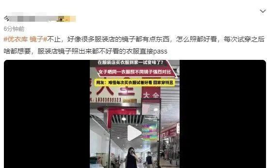 6月16日,#优衣库 镜子#话题登上微博热搜第一,部分网友怀疑优衣库线下门店试衣镜带有“滤镜”,称在店里试穿时照镜子觉得好看,但回家后差别较大。有网友表示,这可能跟店里灯光等环境因素有关。还有网友称,不只是优衣库,商场里服装店的镜子,拍照确实好看些。 ![]() ![]() 16日中午,记者在南京一家优衣库门店看到,店内多处全身镜,都有消费者正在试照。随后记者拿了一件灰绿色的长袖衬衫对比了灯光下和镜子中的颜色,从视觉上看,确实存在一定色差。 ![]() ![]() 组图来源网络/小红书网友@好像在梦游阿 那么,优衣库的镜子是否有滤镜呢?店内导购告诉记者,“镜子没有滤镜,是灯光打的颜色会不一样。店内的镜子都是正常的。” 另据健康时报官方微博,为什么服装店的镜子照起来显高又显瘦?镜子角度与曲率是关键! ①镜子倾斜,看起来腿更长:多数服装店的镜子并非垂直放置,而是与地面呈 65°—75°倾斜角。这种角度使上半身成像位置靠后(视觉上缩短),下半身成像位置靠前(视觉上拉长),形成“腿长身短”的比例,看起来都是大长腿。 ②凹面镜子,看起来人更瘦:部分镜子看似平面,实则是微曲的凹面镜。通过螺丝调整镜面弧度,形成中间薄、边缘厚的结构,使光线向中心汇聚,纵向拉伸人像,让人显高显瘦。凹面镜的曲率经精密计算,形变控制在3%以内,不易被肉眼察觉,却足以改变视觉比例。 |
