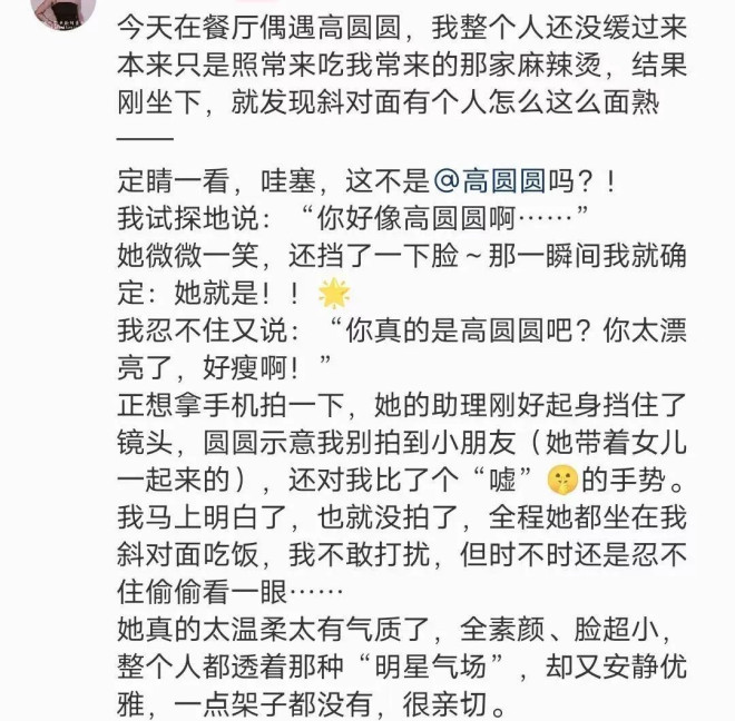 高圆圆与丈夫赵又廷已经携手走过十一年,二人郎才女貌,深受观众喜爱。结婚多年,两人育有一位六岁的女儿,目前似乎没有再考虑生二胎的打算。 ![]() 近日,45岁的高圆圆在西班牙巴塞罗那被路人偶遇。当时,她携带六岁的女儿和助理一同在当地一家麻辣烫店用餐。她打扮休闲,素颜出镜,依旧保持着令人惊叹的美貌。 ![]() 被目击时,高圆圆与女儿Rhea均穿着T恤配长裙,像是一对亲子装。母女俩坐在一旁等待上菜,高圆圆时刻注视着女儿,满眼宠溺,展现母爱的温暖瞬间。 ![]() 今年六岁的Rhea表现得十分乖巧,不吵不闹,安静地坐在妈妈身边。长相方面,赵又廷曾表示,女儿更像他一些,肤色偏黑,似乎没有遗传到高圆圆的高颜值气质。不过,Rhea的神态倒是非常像妈妈,走路笔直,身材高挑长长的四肢,长大后很可能也是气质非凡的美女。 ![]() 而45岁的高圆圆,状态依然令人羡慕。几乎看不到一丝岁月痕迹,即使素颜,也温柔动人。立体的五官轮廓,依旧散发着女神的气质,令人难以忽视。 ![]() 期间,网友们在偶遇她们时纷纷大声呼喊,甚至有人在拍照。面对热情的关注,高圆圆表现得非常大度,微笑着面对镜头,展现了良好的素养和好脾气。 ![]() 此次高圆圆出访西班牙,不仅是度假放松,还带女儿同行,展现了她对家庭的深厚感情。几天前,她在西班牙另一座城市被拍到正在拍摄造型照,此次也出席了某品牌珠宝的活动。 ![]() 总的来看,高圆圆对女儿的疼爱溢于言表,出差也不忘携带宝贝。母女背影相似,画面温馨动人。 你对这对明星母女有什么看法呢? |