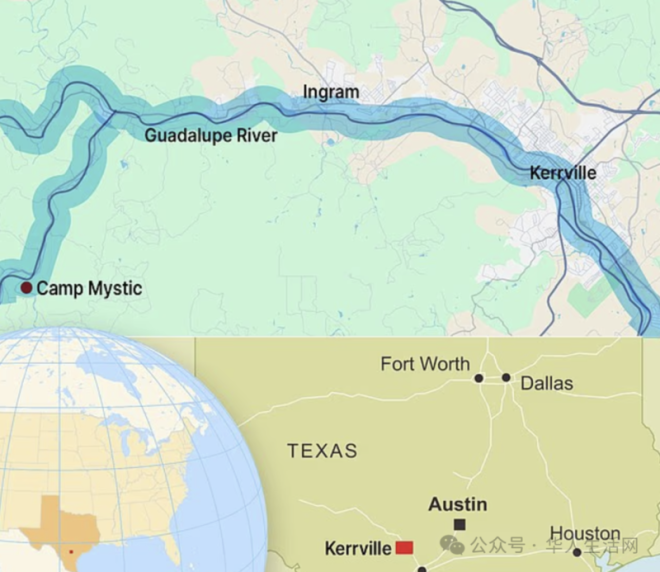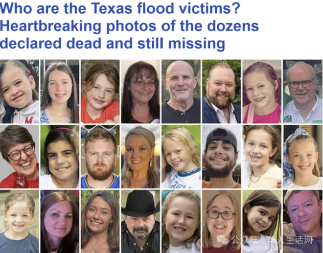 德克萨斯州近期遭遇百年一遇的极端强降雨,引发多地灾难性洪水,最严重的灾情发生在7月4日独立日当天。位于中部的瓜达卢佩河(Guadalupe River)短短45分钟内水位暴涨超过30英尺(约9.1米),吞噬了沿岸营地、车辆与民宅。截至目前,已有至少80人确认死亡,另有41人失踪,其中包括多名儿童。 一段广为流传的监控时序视频显示,从7月4日下午5点起的短短几十分钟内,瓜达卢佩河的水势呈爆炸式增长。视频中,仅6分钟内洪水就淹没了整条道路和道路两侧的树木,一辆辆车辆困在水中,人群惊恐奔逃。有网友评论道:“视频5:12开始,5:18水已经淹到腰部。6分钟内,根本无处可逃。” 7月4日清晨,德克萨斯州瓜达卢佩河流域遭遇罕见强降雨,短短三小时内降水量高达6至10英寸。根据美国国家海洋和大气管理局(NOAA)数据,该地区7月的月平均降雨量仅为约2.1英寸,全年平均降水约31英寸,可见此次雨量远超常规,属于极端天气事件。 据NBC新闻报道,位于灾区的杭特市(Hunt)水位在当日凌晨急剧上涨——从午夜的7英尺跃升至清晨4点的29英尺,创下历史第二高水位纪录。突如其来的水位暴涨,让救援单位措手不及。 此次强降雨引发大规模山洪,令地势起伏的丘陵地区一夜之间成为了“山洪走廊”(Flash Flood Alley)。专家指出,雨水从覆盖石灰岩的陡峭山丘上迅速汇入下方的河流,形成集中暴涌,加剧了洪水灾情。 更令人揪心的是,灾难发生在凌晨,大多数居民和露营者都还在熟睡。尽管气象部门曾提前发布山洪预警,但由于时间点敏感,多数人未能及时察觉并撤离。克尔县(Kerr County)警长拉里·莱萨(Larry L. Leitha Jr.)在记者会上证实,瓜达卢佩河在天亮前决堤,冲毁了沿岸多处民宅和知名的Camp Mystic夏令营营地。当时,营地内正有数百名女童参加夏令营,灾情由此进一步扩大。 据报道,已有至少5名年仅8至9岁的女孩在洪水中罹难,其余十余人仍下落不明。女孩所住的营地正位于河流低洼地带,被洪水一举吞噬。 更令人痛惜的是,夏令营70岁的资深营地负责人理查德·“迪克”·伊斯特兰(Richard “Dick” Eastland),在试图营救女孩过程中不幸遇难。 媒体称,当晚的降雨量相当于“整整一个月的降雨在几分钟内倾泻而下”。 据官方通报,死亡人数分布如下: Kerr县:68人死亡,其中28人为儿童 Travis县:5人死亡 Burnet县:3人 Williamson县:2人 Kendall县:2人 Tom Green县:1人 德州应急管理局局长尼姆·基德(Nim Kidd)在新闻发布会上表示:“我们正在动用直升机追踪‘洪水墙’的流动路径。目前仍有未证实的信息显示,上游仍有大规模水量正在形成。”此外他指出,未来数小时内仍有降雨预警,洪水水位或将再上升2英尺。 据《纽约时报》透露,许多在Camp Mystic遇难或失联的女孩来自达拉斯著名富人区“高地公园”(Highland Park),这一地区也被称作“德州比佛利山庄”。不少家庭与小布什家族长期所在的高地公园联合卫理公会教堂(HPUMC)有关。比如堪萨斯城酋长队(Kansas City Chiefs)老板克拉克-亨特(Clark Hunt)的妻子就证实,一名家庭成员在洪水中遇难。 教堂牧师保罗·拉斯穆森(Paul Rasmussen)发文表示:“这场灾难深深影响了我们的社区……包括许多代女性都曾在Camp Mystic成长。我们的一位教友——年幼的Hadley Hanna仍下落不明,恳请大家为她和她的家人祷告。” 7月6日晚,该教堂举行祈祷会,超过300人到场悼念并祈福。 由于不少遇难者遗体损毁严重,德州政府已开始通过DNA采样确认身份。数十个家庭自发前往Kerrville地区为亲属提供血样与医学档案,协助官方开展辨认工作。 德州应急官员透露,尽管死亡人数已经高达80人,但内部预计遇难人数将突破100人。 与此同时,德州应急管理部门在7月6日再次发布紧急预警,提醒当地居民密切关注气象变化,并立刻前往高地避险。 ![]() 尤其是瓜达卢佩河及其支流——约翰逊溪(Johnson Creek)附近地区,洪水水位仍可能在未来几小时再次上涨。 ![]() 这场发生在美国国庆日的洪水,成为近年德州最致命的自然灾害之一。45分钟暴涨的“死亡之河”吞噬了数十名儿童的生命,留下数不清的破碎家庭与悼念者。 ![]() |
