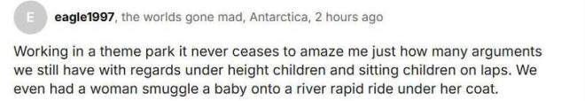 上周六,在乌拉圭首都蒙得维的亚Parque Rodó游乐园发生了一起安全事故。 一名67岁男子A在坐“苹果虫”儿童过山车时,把2岁的儿子放在腿上,抱着孩子一起玩,而且孩子没系安全带,也没有做任何安全措施。 ![]() 其他游客都是家长陪着孩子乘坐儿童过山车,让孩子坐在座位上,系好安全带。 很明显,A的操作很危险,也肯定是违规的。 果然,过山车启动之后就出事了。 ![]() (男子A抱着孩子玩过山车) 当过山车到一个转弯的地方,小男孩突然从爸爸身上掉下去了。 A这下子慌了,马上从座位上站起来,低着头往下看,想看看孩子有没有摔坏。 一名坐在前排、带孩子坐过山车的男子在拍视频时,正好录下了这一幕。 只见镜头一晃,男子A突然从画面中消失了。 估计是救子心切,一时乱了方寸,他竟然跟着从过山车上跳了下去,可想而知也摔得不轻。 他的这个举动,惊得拍视频的男子直说:“哦,有人掉下去了。” ![]() (男子A站起来找孩子) 男子A已经跳下去了,过山车才停下,背景中传来一名女子的喊声:“停下,快停下,一个孩子摔下去了。” 幸运的是,一位下班后跟家人来逛游乐园的护士看到了这一幕,她第一个冲过去检查这对父子的情况。 事后她在媒体采访时说:“我看到这个人倒在地上,他想站起来,但站不起来,还有其他人也在围观。” “我走进人群,靠近这名男子,第一件事就是把他固定住。” “作为一名医护人员,这是我应该做的。” “他从大概9到13英尺高(约2.9米至4.1米)的地方摔下来,我不知道他是不是已经失去意识了。” ![]() (男子A抱着孩子玩过山车) 这对父子被马上送进医院,两个人也都受伤了。 幸好他们坐的是儿童过山车,速度不是特别快,也不是特别高,才没有闹出人命。 2岁的孩子颅骨骨折,目前在住院治疗,据说恢复情况良好,再过几天没准就能出院了;爸爸A全身多处骨折,接受了手术,还需要休养。 现在,官方已经开始对这起安全事故进行调查,出事的过山车也暂停营业了。 游乐园的一名工作人员在采访中表示,当男子A准备坐过山车时,有人警告过他,不能让孩子坐在腿上一起玩过山车。 “大人被提醒过不能把孩子放在腿上,但过山车一启动,他貌似又把孩子放回腿上,没有任何安全措施。” 工作人员还介绍,过山车没有紧急制动装置,万一发生意外,根本没办法立刻停下来, “如果你上车之后对我大喊‘帮我按刹车’,我是办不到的。” ![]() (苹果虫过山车) 可以看出,游乐园虽然有安全规定,也会提醒游客,但在落实方面还有很多不足,才导致男子A有空子可钻。 另一方面,如果真如工作人员所说,已经提前警告过A,那A的问题也很大,是他不听劝告,最终酿成事故。 很多网友看了这件事,都觉得游乐园在安全方面有疏漏,而且那位爸爸也实在太没有安全常识。 “白痴爸爸...为什么男人就不能听听别人说的话呢?” ![]() (截图来自《每日邮报》评论区) “永远不能抱着孩子坐游乐设施!!这是爸爸的错。可怜的孩子。希望他没事。” ![]() (截图来自《每日邮报》评论区) “乌拉圭的安全措施真的烂透了。当然!!把宝宝抱到腿上(也是)。会发生什么呢?” ![]() (截图来自《每日邮报》评论区) “我在主题公园上班,我总是很惊讶,关于身高不够的儿童和让孩子坐在腿上竟然会有那么多争议。我们甚至还遇到过一个女人,把婴儿藏在外套里,偷偷带上激流勇进设施。” ![]() (截图来自《每日邮报》评论区) “那个白痴爸爸不听工作人员的劝告,自以为是,竟然把自己儿子置于危险境地!他都67岁了,你觉得他应该能理智地听取工作人员的建议了,而不是把儿子的小命攥在自己手上!真高兴孩子没事儿。” ![]() (截图来自《每日邮报》评论区) 男子A的一意孤行,最终自作自受,害自己受伤,也差点儿害儿子丢了性命。 他这种玩悬的做法,可千万不能心存侥幸啊...... |