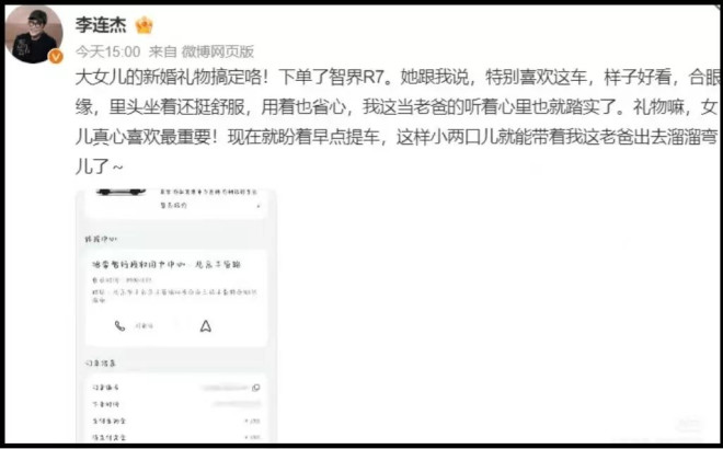 近日,李连杰通过社交平台发文,祝贺大女儿新婚,并表示送了一台汽车作为女儿的新婚礼物。这本是让人祝福的喜事,谁知却收获网友无数吐槽,口碑大翻车。 ![]() ![]() 首先,李连杰的官宣文案里提到的汽车,是某国产牌子,价格为30W。虽然支持国货值得赞扬,但他的文案里没有真情流露,更没有女儿女婿的婚礼照片,疑似借婚礼为汽车宣传。 ![]() 网友的猜测也是有迹可循,李连杰这条文案发送才一个小时,该汽车品牌的CEO和官方就来到评论区留言,直言感谢他的支持。尽管有不少死忠粉丝拥护,但依旧引发了路人大面积吐槽。 ![]() ![]() 有不少网友表示,一看到送30万车子给女儿结婚,就知道一定是原配黄秋燕的女儿,如果是利智女儿,一定不是这个待遇。 ![]() ![]() 不仅如此,网友还吐槽,李连杰这条文案,满屏都是广告味,丝毫没有温情可言。利用女儿婚礼打广告,不知道怎么想的。 ![]() ![]() 还有网友称,明星接这种软广,通常商家都会附赠送商品,所以李连杰就算真的送女儿车子了,也是一分钱都没有花。 ![]() ![]() 更有人扒出,当初李连杰自称捐款上亿,给自己女儿却只有30万的车子,未免太寒酸了。 ![]() 不管李连杰有没有真的送车给大女儿,陪嫁又给了多少,这些年来,关于他薄待原配女儿的话题都一直存在。作为一个家喻户晓的功夫明星,李连杰在中国影坛的地位可见一斑,但私生活争议却一直不断。 ![]() 李连杰和黄秋燕离婚后,又与利智生下了两个女儿。对待这两个女儿,他可谓视若珍宝,过去这么多年来,他一直用镜头记录女儿的成长。如今利智的两个女儿长大成人,他还经常带着一起参加活动。 ![]() 就在今年5月份,李连杰小女儿大学毕业,他还在社交平台晒出合影,并直言四个女儿都是自己的骄傲。但翻遍了社交平台,也只看到他和利智所生两个女儿的照片。 ![]() 之后,李连杰还带着女儿拜访向太,疑似一直在为女儿积攒人脉,托举未来的事业。 ![]() 这么多年来,网友几乎找不到李连杰和原配2个女儿私下有交集。这次官宣婚礼,算是唯一一次,但也商业气息满满。前任女儿当隐形人,现任女儿却频频曝光,二者差距如此之大,难怪引发网友吐槽。 ![]() 李连杰作为一个演员,确实很优秀。但作为一个父亲和丈夫,这么多年来一直深陷非议。之所以如此,是因为当年他和黄秋燕的婚姻,是因为利智插足才分崩离析的。 ![]() 据悉,1989年,李连杰拍摄电影《龙在天涯》时与利智相识并产生感情。当时原配妻子黄秋燕正怀着他们第二个孩子,李连杰居然提出了离婚,黄秋燕也没有纠缠,带着两个女儿独自生活,经济一度陷入困境,令人唏嘘。 ![]() 离婚后,前任一家彻底消失在李连杰的生活中,不免让人遐想,双方是否闹翻了。只能说人无完人,就算是实力派明星,脱了那层观众给他套上的滤镜,在生活中也只是个会犯错误的普通人而已。 |