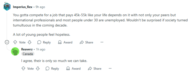 一份最新报告显示,加拿大有大约一半的年轻租客,以及三分之一的各年龄段租客,把他们税后收入的大部分都花在了房租上。 ![]() ![]() 图源:51记者拍摄 专家表示,这份由Rentals.ca近日发布的调查表明,传统的“房租支出应控制在收入三分之一以内”的经验法则,对许多加拿大人来说已不再可能——这种情况可能会威胁租客们未来为退休储蓄的能力。 “这是年轻租客常常从父母或很多理财顾问那里学到的一个标准——你应该把大约三分之一收入用于住房。”Rentals.ca的发言人贾科莫·拉达斯(Giacomo Ladas)说。 “但从这份调查可以明显看出,这几乎不可能,尤其是在近年来房租飙升的情况下。” 拉达斯表示,18到24岁之间的人群中有49%,而所有租客中有34%表示他们将超过一半的收入用于支付房租。还有57%的受访者表示,他们考虑因高房租而搬到新的城市。 调查还发现,那些把超过一半收入花在房租上的人中,有46%已经花了六个月甚至更久寻找新公寓。拉达斯指出,这说明尽管2025年以来租金价格有所回落,市场仍不够宽松,难以真正促使人们搬家。 他举了埃德蒙顿为例,这座曾经负担得起的城市,平均房租在过去三年间却上涨了27%。 “我只知道工资并没有涨这么多。”拉达斯说。 Objective Financial Partners的独立财务顾问安德鲁·多布森(Andrew Dobson)表示,任何把超过一半收入用来付房租的人,即便几十年下来,也很可能无法为退休存够钱。 “当住房成本这么高时,几乎没有余地存钱。”多布森说,并补充道,通货膨胀还影响了其他生活开支,进一步限制了储蓄的可能。 在2024年,加拿大皇家银行经济学家凯莉·弗里斯通(Carrie Freestone)的一份报告得出结论:租客在积累财富方面正面临越来越大的困难,相比之下,房主情况要好得多。 报告发现,自2010年以来,房主的净资产增加了相当于家庭可支配收入的9到13倍。而与此同时,租客的净资产在同一时期仅从3倍增长到3.5倍。 弗里斯通还发现,租客将更大比例的收入花在住房上——甚至高于房主——这进一步阻止了他们成为房主,从而长期阻碍了财富积累。 多布森表示,他已经在加拿大一些最大的租赁市场中看到了松动的迹象:一些房东根本找不到愿意支付他们所需租金的租客。 在最近对一位客户的出租物业进行分析时,多布森建议客户卖掉房子,因为出租反而会亏钱。 随着许多房东面临这种情况,而许多租客仍在观望,多布森说,租客们或许可以期待今年租金价格会继续下降。 网友评论扎心“另一半租客是和父母住在一起。” ——“太真实了!我年薪$10万,自己租了2年房后,还是搬回家去了。每年要花$4万在租金上,还得攒买房的首付,这根本没戏。我现在还会付房租给父母,支付一些账单,但却能比之前多省超过2倍的钱。” ![]() “除了经济适用房,加拿大的其他一切都让我们感到愤怒。当权者不认为这是紧急情况,而民众只能默默忍受。” ![]() “工作薪水很低,加薪也不多,但住房成本却一直在飙升。” ![]() “哈哈,这种情况已经持续好几年了。不仅仅是‘年轻人’,单身人士也一样。” ![]() “你必须拼命地竞争一份年薪$4.5万到$5.5万的工作,不仅要和你的同龄人竞争,还要和国际专业人士竞争,而且大多数30岁以下的人都失业了。如果未来十年社会陷入动荡,我一点也不意外。很多年轻人感到绝望。” ![]() |