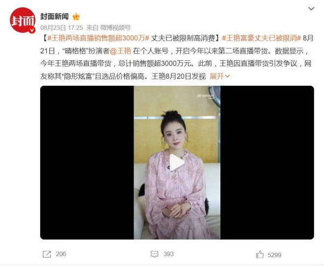 “晴格格”也逃不过直播带货? 曾凭借《还珠格格》中“晴儿”一角成为一代人白月光的演员王艳,最近再度成为话题中心——不过这一次,不是因为新剧,而是因为直播带货。8月21日,她在个人账号完成今年第二场直播,两场总销售额突破3000万元,登上某平台保健食品榜第1名。 ![]() ![]() ![]() ![]() 成绩虽亮眼,争议却从未停止。不少网友发出灵魂拷问:“富太太为啥也直播带货?住着俯瞰故宫的亿级豪宅,为什么还要来直播带货?” 事实上,王艳的直播之路早有铺垫。她并非刚刚入场的新手:去年初,她就曾坐在自家可眺望故宫的顶层豪宅中,围炉煮茶,安静地带货化妆品;七月,她还发布过推广燕窝的视频。与其他大喊“9块9上车”的主播不同,王艳多次强调自己“不喜欢叫卖式直播”,试图营造一种安静、高质的带货氛围。 但她选择的商品,却让不少观众直呼“买不起”。今年7月26日,她首场直播主打一款女性益生菌,4小时销售额据估计在1000万至2500万元之间;不到一个月后第二播,同一产品再度卖出超过750万元。两场总销售额轻松突破3000万,可见其粉丝购买力不俗。 ![]() 然而真正让舆论发酵的,是她“富太太”的人设与“带货”行为之间的反差。王艳丈夫是澳大利亚籍华人地产商王志才,名下拥有多条限制消费令,最近一次立案就在今年5月。而她所居住的王府世纪大厦豪宅市场估值约1亿,不仅自带空中花园、大理石地铺,更因“推开窗就是故宫”的景观屡上热搜——此前她拍猫时不慎拍进宫墙一角,就曾引发惊叹。 一边是丈夫被限高的现实,一边是肉眼可见的奢华生活,这让很多网友感到割裂。有人直言:“富豪拖欠款项,家人难道不应共同承担责任吗?”,还有网友举出身边例子:“邻居被限高、欠银行几个亿,孩子照样在澳洲留学拿澳籍,日子毫不受影响。” ![]() 但也有人反驳:“赚钱不寒碜,向太不也直播?”“钱多又不烧手,靠自己能力挣钱有什么问题?” 面对争议,王艳在8月20日发布视频回应,对“分享带来的不好感受”表示歉意,并承诺会认真倾听各种声音。她没有直接回应关于选品价格、家庭财务状况等问题,但表示今后会更加谨慎。 ![]() 从“晴格格”到带货主播,王艳的转型背后,不仅是个人事业的选择,更折射出当下明星带货潮中的复杂面相:有人是真还债,有人是玩跨界,也有人是开拓新事业——不管初衷如何,进入这个赛场就要接受观众的审视。 而当“豪门滤镜”遇到“直播业绩”,谁还能分得清,这是又一场“实力创业”,还是“另一种形式的炫富”?或许只有数据和王艳自己知道了。 |