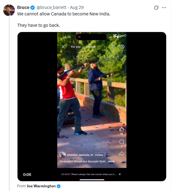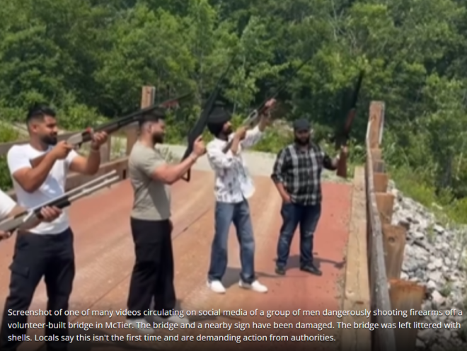 近日,加拿大安省的度假胜地马斯科卡(Muskoka)火了,但这次不是因为风景如画,而是一座桥突然变成了“打靶场”——多伦多视频显示,一批又一批印度人跑到在这里疯狂开枪,还把画面发上网炫耀! 在其中一段视频中,两名男子开车停在桥上,下车后直接掏出步枪,对着远处猛扫。地面上散落着大量弹壳。 ![]() ![]() 图源:TikTok 视频被转发到X上后立刻引发轰动。 有网友直言:“我们不能让加拿大变成‘新印度’,这些人必须回去。” ![]() 图源:X 多段视频曝光:桥被射烂,弹壳成堆 更离谱的是,这并不是一次偶发事件,而是一系列持续发生的“桥上开枪秀”。 另一段视频则显示:在同一座桥上,一名男子手持一支长枪反复射击,声音震耳欲聋。 ![]() 图源:X 还有一段视频显示:两名男子分别手持步枪和手枪,在桥上疯狂开枪,身边还有两人悠哉围观。 事后画面显示,桥体与一处标志牌被子弹击穿损毁。 ![]() 图源:X 还有更多类似视频,不仅秀“打枪”,还展示“军火库”般的场景: ![]() ![]() ![]() ![]() 图源:TikTok 有网友爆料:这座桥周围已经堆满了成千上万个弹壳。 ![]() 图源:X 警方展开调查 事件迅速惊动警方。安省省警(OPP)已确认:他们正在积极调查,并呼吁知情人士提供线索。 ![]() OP警告:在公共区域随意开枪,是严重的刑事犯罪,任何危及他人安全或造成财产损坏的行为,都可能面临指控,包括: