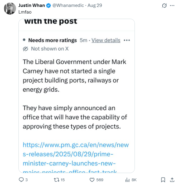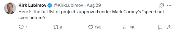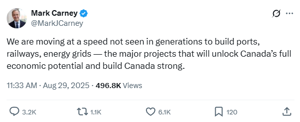 近日,卡尼终于要做点实事了! 8月29日,他在社交媒体X上发帖说:“我们正在以几代人未曾见过的速度建设港口、铁路、电网——这些重大项目将释放加拿大的全部经济潜力,使加拿大变得强大。” 截至目前,卡尼这条“要把加拿大做大做强”的帖子已经有3000多条评论了,真是难得一见的“火爆”。 ![]() ![]() 图源:X 下面,就让我们一起来看看,到底发生了什么“大事”。 加拿大总理办公室8月29日发布新闻稿,总理马克·卡尼宣布成立新的“重大项目办公室”(MPO)。MPO总部设在卡尔加里,并将在其他加拿大主要城市设立办事处。其使命是作为单一联络点,加快“国家级”项目的建设。 它将主要通过两种方式来实现这一目标:首先,简化和加速监管审批流程;其次,在需要时,协助这些项目的融资结构和协调工作。 ![]() 图源:加拿大总理办公室 MPO将帮助识别符合加拿大国家利益的项目,并协助加快其开发进程。MPO将通过设立一套统一的审批条件来加速项目,从而将国家利益项目的审批时间上限缩短至两年。 为此,MPO将与各省和地区合作,实现对环境评估的“一个项目,一次审查”模式。同时,它还将致力于吸引国内和国际资本投入这些重大项目。 ![]() 图源:X 据悉,政府推出的《建设加拿大法案(Building Canada Act)》于今年六月获得议会通过。 ![]() 图源:quoimedia.com 该法案旨在简化联邦审批流程,从而加快重大项目的建设。这些项目——包括港口、铁路、能源走廊、关键矿产开发和清洁能源项目——将更好地连接各个地区的经济,实现产业多元化,开拓新市场,并创造高薪工作,同时保护加拿大严格的环境标准,并维护原住民的权利。 ![]() 图源:X 长期以来,重大基础设施的建设一直因繁琐、低效的审批流程而停滞不前,导致巨大的投资机遇白白流失。卡尼政府正以紧迫感和决心来改变这一进程,让加拿大能够建设那些将使该国的经济转型为七国集团中最强大的基础设施。 最后,该新闻稿写了这么一句充满想象力的话,作为结尾:“政府将在未来几周内宣布第一批国家级项目。” 网友狂喷卡尼“这真的很尴尬。” ![]() “请证明一下,大骗子!” ![]() “请把正在进行的项目列出来。” ![]() “以下是马克·卡尼以“前所未有的速度”批准的项目完整列表:(空白)” ![]() “卡尼领导的自由党政府目前还没有开启任何一项项目,比如建设港口,铁路或电网。他们只是简单宣布了一个办公室,可以有能力批准这些项目而已。” ![]() “到目前为止,卡尼总理,在这上任的半年里,你做了什么?除了讨论这些有的没的。” ![]() “兄弟,除了降低加拿大的GDP和被特朗普戏耍之外,你什么都没做。” ![]() 还好,并不是所有网友都那么清醒,还有一些自由党铁粉对卡尼的领导,表示赞赏。 “卡尼总理富有远见的领导正在振兴加拿大经济,并带领我们走向更强大、更紧密联系的未来!” ![]() “我非常激动地看到加拿大的潜力正在被释放。创新。多元化。扩张。总理,您做得太棒了。” ![]() |