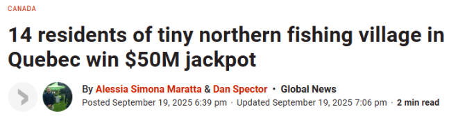 时来运转,一夜暴富, 不是一人,竟是全村! ![]() 九月初的一天,清晨6点40分,Della Spingle和她的丈夫Chesley Griffin接到一个电话,得知自己中了大奖。 电话那头是他们的员工——一家社区杂货店的收银员。那家店自上世纪80年代就开在魁北克省的圣保罗河(St-Paul’s River)小镇。 ![]() 图源:Global News 员工告诉他们:Spingle是魁北克乐透Lotto Max 5000万加元头奖的14个中奖者之一,而中奖彩票正是他自己的店里卖出去的。 ![]() ![]() 图源:Global News 这个只有大约150位居民的小渔村里,有一群人近20年来一直合买彩票。这次中奖意味着,村里大约10%的居民一夜之间成了百万富翁。 ![]() “团购”的彩票 图源:Global News Spingle笑着说:“我们中了350万加元……这简直不敢相信,对吧?” “从那之后我一直忍不住傻笑。” ![]() 图源:Global News 14个中奖者里有13个就住在圣保罗河,这个小镇属于魁北克的Bonne-Espérance市镇,距离纽芬兰与拉布拉多省边境大约60公里。 ![]() 偏僻的小渔村 图源:Global News 市长:“简直难以置信”作为卖出中奖彩票的店主,Griffin还额外拿到1%的奖金,也就是50万加元。 Griffin说,他现在正考虑提前退休,而且这次中奖不仅改变了个人,也会带动镇上的其他生意,对整个社区都是好事。 “当地的木匠们……现在电话都被打爆了,因为中奖的人都想装修房子。”Griffin说,“有些事情他们想做很多年了,现在终于有机会了。” 在记者的镜头前,其中一位中奖者Carolyn Sims(下图),控制不住自己,喜极而泣。 ![]() 图源:Globbal News Bonne-Espérance市长Dale Roberts-Keats笑得合不拢嘴。“我站在这个美丽的小镇,看着我们社区的14个人变成百万富翁,这简直难以置信。”她说。 “我们希望整个社区也能从中受益……比如建筑业,或者兴建一些新房子。” ![]() 市长Dale Roberts-Keats 图源:Global News 她强调,镇政府不会主动向中奖者要钱,但或许将来会有一些回馈。她建议中奖者们在花钱前仔细想清楚,并请理财顾问帮忙。 “如果不小心,钱花光是很容易的,我们都听过一些悲惨的故事。” 她提醒说。 ![]() 偏僻的小渔村 图源:Global News 退休的退休 买车的买车刚满74岁的Loretta Griffin表示,这次中奖让她终于可以从鱼厂退休了,她在那里辛苦干了一线工作整整30年。 “现在才慢慢开始意识到这一切是真的。” 她说。 她打算用这笔钱帮帮家人。她的儿子想要一辆卡车,女儿则想要一套新的卧室家具。 ![]() 中奖发布会 图源:Global News 另一位中奖者Bradley O’Brien说,他住在外地的三个孩子都能因此受益。 “对我来说,一夜之间变成百万富翁……这能帮到很多人。”他说。 他的母亲Maud Griffin O’Brien也中奖了。她计划建一个日光房,还开玩笑说:“我只需要照顾六个孩子里的五个了。” “他(Bradley)已经没问题了。” 她说着笑了,“我会给孙子们分一点。” |