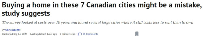 一家名为 Easy 的房屋装修公司委托进行的一项研究发现,与普遍认知甚至常识相反,在短期到中期内,租房可能比买房更划算。 ![]() ![]() 图源:51记者拍摄 这项研究比较了加拿大各大城市的租金与按揭成本,以确定哪种选择能在10年后让居民的财务状况更好。 结果显示,在加拿大25个最大城市中,有7个城市在10年内租房比买房更省钱。 ![]() 图源:easyrenovation.ca 有些节省数额相对有限。例如,在安省密西沙加,租住一套两居室的10年总成本,比购买同等面积住房要便宜约13,300加元。但在卑诗省的阿伯茨福德(Abbotsford),10年的节省金额高达118,700加元,平均每年接近12,000加元。 按省份来看,研究指出购买依然往往是更划算的选择。新斯科舍省尤为明显,买房在10年内可节省10万加元;爱德华王子岛的节省则较小,约14,000加元。 与此同时,安省是唯一被认为租房比买房更有利可图的省份,节省金额约11,500加元。 不过,这一结论在多伦多并不成立。在多伦多,买房比租房在10年内可多省约 16,700加元。然而,在安省其他被调查的城市——布兰特福德(Brantford)、剑桥(Cambridge)、汉密尔顿、基奇纳(Kitchener)和密西沙加——结果均显示租房更划算。 ![]() ![]() 图源:easyrenovation.ca 研究同时指出,即便考虑到这种节省,租房也存在不少缺点。租客无法获得长期的资产增值,可能受到租金上涨的制约,也无法为退休积累潜在的“老本”。 研究强调:“拥有住房往往能带来更深的归属感。能够根据个人喜好进行装修、翻新和扎根,这些都会营造出一种稳定与归属感,而租房则很少能带来这种体验。” 但报告也补充道:“在那些‘租房更便宜’的城市,机会成本可能会被流动性、灵活性以及将节省下来的资金投资到其他地方的可能性所抵消。” 研究的购房价格数据来自加拿大房地产协会,租房成本数据来自Apartments.com和加拿大按揭及住房公司。 计算购房成本时,包含了4.25%利率的按揭还款、物业税、1.5%的年度维护费、房屋保险、土地转让税/手续费、产权费用和验房费用。 租房成本则包含租客保险,并假设保险每年上涨2%、租金每年上涨2.5%。 10年期的购房净成本计算还考虑了按揭期内积累的资产权益。 |
