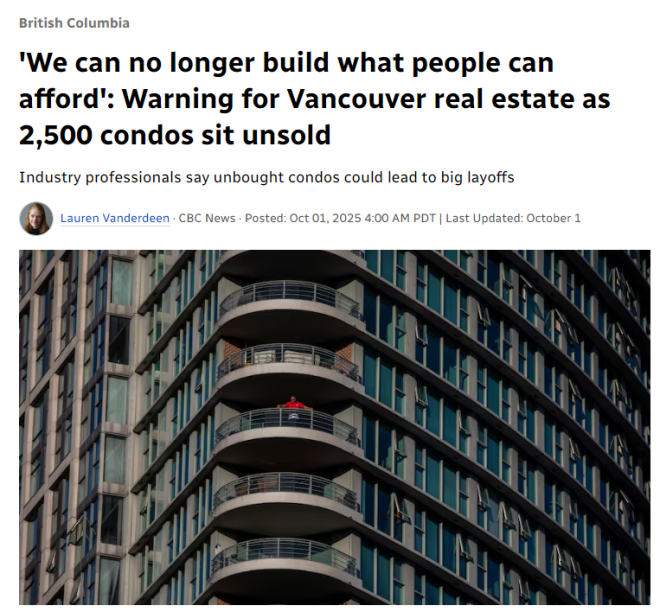 大温房地产行业高管最近发出警告——温哥华正在面临新建公寓过剩的问题。根据加拿大房屋与按揭公司(CMHC)的数据,目前大温地区大约有 2500套新公寓无人问津、空置待售,数量是去年的两倍。 ![]() 城市发展研究所(Urban Development Institute)总裁兼CEO安妮·麦克马林(Anne McMullin)直言,问题的根源在于——建造成本已经远远超出了普通市民的承受范围。 “过去十年建房成本飞涨,现在要建一套房,已经超过大温地区八成民众的购买力。开发商也不会亏本卖房。” 她说。 多年来,开发商和建商还能勉强消化不断上涨的人工和材料成本,因为大家普遍相信房价会持续上涨。但现在情况变了,麦克马林把矛头指向了各级政府的新政策,称政策成本的增加让建筑成本再度上扬,最终导致新房价格进一步脱离实际。 ![]() “政府在各个层级推行的政策,让我们再也造不出普通人买得起的房子。” 她透露,有些开发商因为预售目标达不到,拿不到银行融资,不得不把定金退还给买家;还有些开发商在房价上涨期贸然上马项目,结果资金链断裂,已经走向破产清算。部分公司甚至已经开始裁员。 ![]() “一个潜在的风暴正在逼近,这很可怕。” 麦克马林希望各城市重新审视相关政策要求,比如非市场租赁住房配额、节能标准以及公共艺术配置等。 温哥华本地开发公司Rennie的总裁格雷格·扎亚迪(Greg Zayadi)也指出,市场放缓其实早在 2022年3月就开始显现,但过去一年情况变得格外严峻。 “过去20年,房地产行业一直表现很好。但这次新公寓销量的下滑,将在劳动力市场产生很大的连锁反应。” 扎亚迪提醒,当前这种“开发商手里握着这么多卖不掉的公寓”的情况,上一次出现还是 24年前。他说,现在很多开发商还没意识到,花80万买一套公寓的人,其实并不想要450或500平方英尺的小户型,而是期待 800到1500平方英尺、价格在80万到120万之间的房子。 ![]() “行业和省份必须找到办法,把售价控制在每平方英尺700到900元之间。这个价格比现在市场价还要高出200到300元,但这是一个可接受的区间。” 目前这些滞销公寓主要集中在本拿比、高贵林和素里部分区域。 皇家太平洋地产经纪奥列格·加柳克(Oleg Galyuk)表示,从他的经验看,二手公寓比新盘预售更容易卖出去。 ![]() “新盘库存往往卖不动。” 他认为,一些新房户型设计不合理,加上车位稀缺,也让买家缺乏兴趣。为了清库存,开发商纷纷祭出各种优惠手段: 免费送车位 赠送储物间 交房时提供现金返还 加柳克直言,部分开发商过于依赖投资客市场,忽略了实际居住需求。 “眼下涌入市场的很多公寓,根本不是人们真正想住的房子。” 总结来说,大温的新公寓市场正在出现一个前所未有的“供需错位”:开发商拼命建,但建出来的不是本地人想要、也买不起的房子;而买得起的人,却发现选择并不适合自己。业内人士认为,如果政策和市场环境不调整,未来温哥华的楼市可能迎来更大的风暴。 |