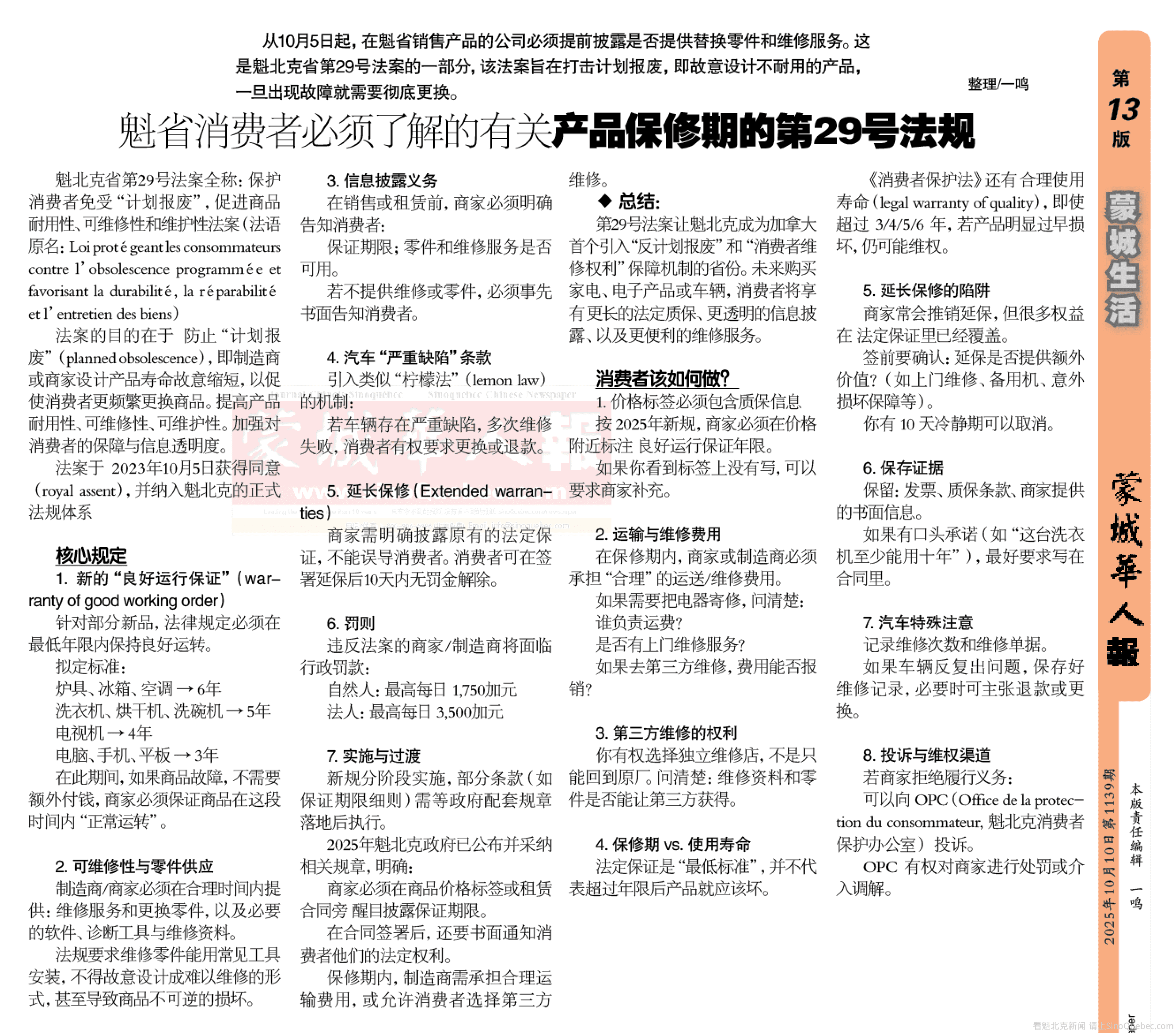 魁北克针对零售商在商品可持续性和产品计划报废方面的措施于 2023 年 10 月 3 日由省立法机关通过,今天开始生效,作为保护消费者免受故意缩短产品寿命并促进商品耐用性、可修复性和维护性的法案的一部分。在魁北克省,现在禁止销售故意限制正常使用寿命的商品。 |