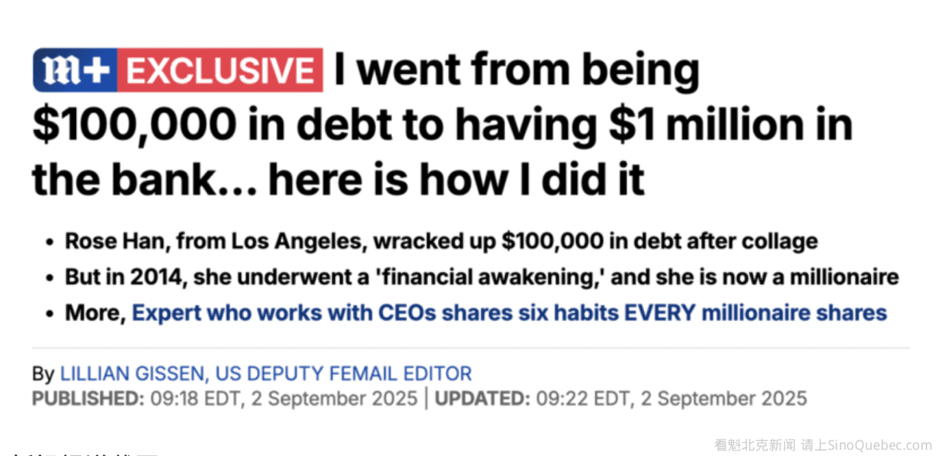据Daily news新闻10月6日报道 来自洛杉矶的亚裔女子Rose Han曾经和许多美国年轻人一样,大学毕业后背负沉重的学生贷款。 尽管她顺利进入华尔街一家全球性投资银行担任外汇交易员,年薪高达六位数,但高薪并没有带来财务自由——反而,她在奢华的生活方式中越陷越深,债务最终高达10万美元。 债务深渊:高薪不代表财务自由 Rose回忆,当她毕业后面对学生贷款的高额月供时,感到极度压力,于是选择了仅付利息的还款方式,每月只需缴纳200美元。 她说: “我以为只要不去看账单,债务就会神奇地消失,但事实恰恰相反——债务只会不断膨胀。” 除了学生贷款,她还背上了大量信用卡债务。 她坦言: “我想‘活得体面’,于是花钱买昂贵的衣服、吃高级餐厅,为了在纽约‘看起来成功’。即使年薪六位数,我仍然月光,因为我从不认真管理财务,只是一味刷卡、随遇而安。” 那段时间,Rose完全沉浸在“及时行乐”的思维中,从未认真考虑未来。 “说起来很尴尬,但那真是一场‘学生贷款+虚荣生活’的完美风暴,”她说,“我的理财观念就是——‘装到成真’,然后祈祷好运。” “财务觉醒”:危机中的转折点 直到2014年底,一次突如其来的事件让她彻底觉醒。 她回忆称: “那是一个周五晚上,我正泡澡放松,结果老板打电话让我立刻回公司处理一份紧急报告。我坐在地铁上,突然意识到——我没有任何自由。辛苦工作多年,连度假都得刷信用卡。” 那一刻,她决定改变自己。Rose 开始疯狂学习理财知识,阅读上百本书,花无数时间在网上研究,还报名上课。最终,她辞去了华尔街的工作,开始尝试不同的职业与副业,从房地产到记账顾问,全面探索新方向。 从负债到百万:她总结出三大关键步骤 当她改变了对金钱的态度后,生活也随之彻底转变。 Rose 发现,要走出债务陷阱、迈向财富自由,必须先完成三个阶段性的目标: · 建立应急基金 她先攒下2000美元的“起步应急金”,以应对突发支出。 · 还清信用卡债务 她系统性地清偿高利率债务,不再让利息吞噬收入。 · 积累3至6个月生活费用 这一步让她拥有心理安全感,不再为突发状况焦虑。 完成基础积累后,她开始投资股市。 Rose解释道: “我每月会固定投入一笔钱到指数基金中,不多,但关键是自动化。我设置自动转账,在我花钱前就先投资。正是这种长期、持续的投入,让我的投资组合在几年内增长到七位数。” 投资哲学:时间胜于时机 Rose 强调,真正的财富积累不在于“抓热门股票”或“择时买卖”,而在于长期坚持与复利效应, “我告诉所有人——不要等有上千美元再开始投资,从100美元起步也行。关键是稳定投入,让时间帮你增长财富。” 她信奉“定投策略”(Dollar-Cost Averaging),认为持续买入低成本指数基金,是普通人实现财务自由的最可靠方式。 从欠债女孩到百万创作者 2019年,Rose 开设了自己的 YouTube 频道,分享理财经验与自我成长故事,如今已拥有超过100万订阅者,并将其发展为年收入七位数的事业。 她还出版了新书《Add A Zero(多一个零)》,书中详细讲述了她如何实现财务自由的全过程。 她说:“《Add A Zero》不仅是让你银行账户多几个零,更是让你的人生多几个选择——更多自由、更多时间、更多可能。现在,我每天做的事都是出于‘想做’,而不是‘必须做’。这,才是真正的自由。” 从10万美元的债务,到100万美元的净资产,Rose Han用十年时间证明:财富的关键,不在于收入,而在于心态与行动。 正如她所说:“不是市场的时机决定你能否成功,而是你愿意投入的时间与坚持。” |