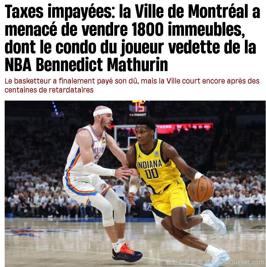 蒙特利尔市在过去几周内不得不威胁将近1800处房产拍卖,其中包括篮球明星 Bennedict Mathurin 的豪华公寓,原因是业主未缴清税款。 Mathurin 于2022年与NBA印第安纳步行者队签下近3000万美元的合约,而他被市政府要求支付19,757.50元。他自2024年7月在 L’Île-des-Sœurs 购买了一套价值超过一百万元的公寓以来,一直拖欠房地产转让税(俗称“欢迎税”)。 9月10日,市政府在这套公寓及其他1793处房产上登记了因欠款未付的拍卖预告。这数百位业主的债务总额接近2400万元。 蒙特利尔计划于11月17日上午10点公开拍卖这些房产,若在此之前欠款未清。 这一威胁显然奏效,已有数百位业主缴清欠款——其中包括 Mathurin。 该球员的代表 Jon Olivero 通过电子邮件确认,这位篮球运动员已不再欠市政府任何款项。 大多数人最终都会缴款 不过,也有部分蒙特利尔居民似乎还未领会到教训。 截至10月2日,仍有1245处房产因欠税而面临被拍卖风险,相关债务约为1950万元。 其中,一位居住在 Outremont 的豪宅业主拖欠近21.5万元。而大多数逾期业主的欠款低于1万元。 不过,蒙特利尔市发言人 Gonzalo Nunez 指出:“绝大多数被列入该程序的业主都会在拍卖开始前缴清欠款。” 根据市政府提供的数据,最终每年真正被拍卖的房屋和土地不到20处。 两年的程序 Nunez 解释说,法律赋予市政府在业主长期不回应账单时拍卖房产的权力,这一程序通常“持续约两年”。 这类欠款可能包括房产税或“欢迎税”(房地产转让税)。 Mathurin 出生于 Montréal-Nord,他在今年6月参加NBA总决赛时曾引发广泛关注。 他的球队最终在七场大战后输给了俄克拉荷马城雷霆队——该队阵中同样有一位来自魁北克的球员 Luguentz Dort。 |
