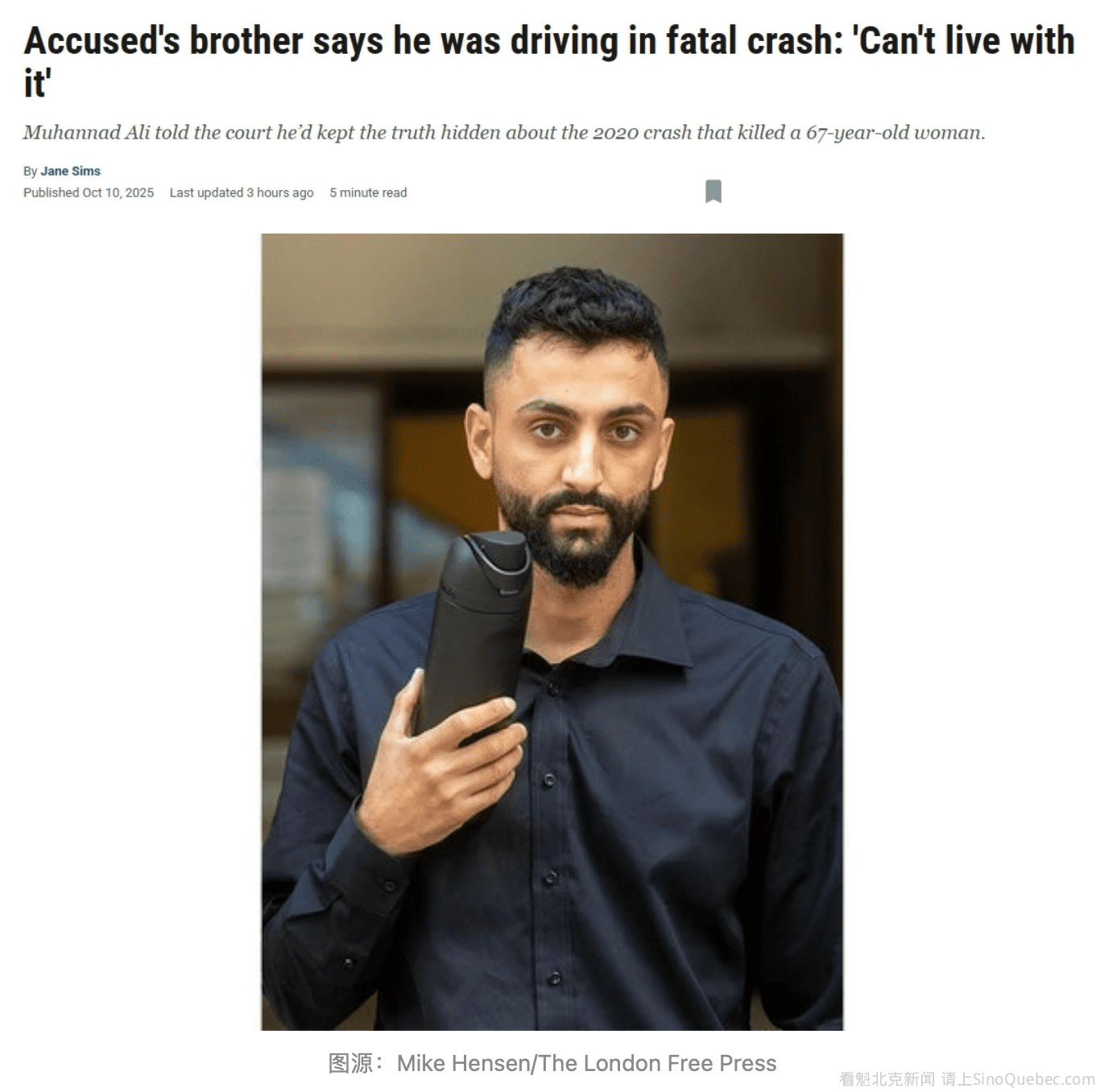 安省伦敦市2020年的一场车祸夺走了一名67岁女子的生命,五年后,一名男子在庭上流泪认罪,称他一直隐瞒了肇事者是自己的真相、让哥哥为他顶罪。 上周在法庭上,穆罕纳德·阿里(Muhannad Ali)擦去眼泪,终于说出了一个压在他心头五年的秘密。 这位28岁男子通过阿拉伯语翻译对检控官James Spangenberg说:“我没有对法庭撒谎,我说的都是真的。” “我一直被这个秘密折磨着,知道有其他人也因此受折磨,而我却把真相藏在心里。” 穆罕纳德的自白是:2020年11月3日晚上,驾驶那辆黑色改装奔驰车的并不是他的哥哥巴哈·阿里(Bahaa Ali,31 岁),而是他自己。 那天晚上,奔驰在Southdale Road向东行驶时,与一辆左转的现代索纳塔(Hyundai Sonata)在White Oak Road路口相撞。 索纳塔的司机Jacqueline Howarth与乘客Joan Clubb被送往医院。起初医生认为两人伤势并不致命,但当天晚些时候,67岁的Clubb因车祸造成的内伤死亡。 哥哥被控危险驾驶致死 巴哈·阿里被控危险驾驶致人死亡,他在周一开始的安省高等法院庭审中不认罪。 主审法官Barbara MacFarlane听取了证词:由于事故初期未被认为严重,警方并未封锁现场进行全面勘查。直到三个月后的2021年2月,巴哈才被正式起诉。 检方依据目击者证词与附近车行的监控视频指控奔驰当时超速行驶。专家估算其时速高达129公里,并在撞上索纳塔车的副驾驶一侧后将车抛飞,撞上交通灯杆。 巴哈·阿里在周四出庭自辩时称,事故发生时他并非驾驶者,而是弟弟穆罕纳德在开车。他之所以承担责任,是为了保护当时情绪崩溃的弟弟,同时想将责任推给索纳塔的司机,以便能从保险公司获得4.3万元的豪车赔偿。 “司机调包”的真相 由于这番供述,第二天穆罕纳德出庭。检控官Spangenberg甚至当庭讽刺辩方的策略为“兄弟调包计”,并表示可能需重新传唤部分证人。 上周五庭审结束时,检方完成了对巴哈的盘问。巴哈称自己“感到内疚”,并后悔对警方撒谎。随后,轮到弟弟作证。 兄弟俩当天都穿着黑衬衫与黑裤。巴哈称,他们常被误认成对方,只是穆罕纳德个子更矮、更瘦,说话更轻,头发与胡须颜色也更浅。 穆罕纳德的叙述与哥哥早前供述大体一致。那天早上,哥哥打电话约他11点在Zaatarz 餐厅共进早餐。穆罕纳德开车前往Adelaide Street的分店,但未见哥哥与朋友,于是打电话联系。 结果发现他们在另一家,位于Southdale Road近Wellington Street的分店。穆罕纳德于是驾车绕行:先沿Oxford Street向西,再转入Wharncliffe Road向南,最后东转入Southdale Road,途中发生车祸。 “我觉得是我的错,因为我当时超速了,但那辆车突然就出现了。”他在辩护律师Melina Macchia的询问下回答,估计自己时速至少100公里。 车祸发生后,他立即给哥哥打电话,并在通话中下车查看,整个人发抖。有人问他是否受伤,也有人指责他闯红灯,他否认了。 他看到两辆车的损毁与索纳塔车中的两名女性,但并未拨打911,认为周围围观者会报警。 哥哥替他顶罪 “我看到哥哥朝我跑过来。我告诉他我没超速,是她突然冲出来的。” 穆罕纳德说,哥哥让他不要和任何人说话。于是他留在路边,看着哥哥与警察交谈。之后,他们叫来拖车,把损坏的奔驰拖走离开现场。 当天回到家,哥哥告诉他:他已向警方表示自己是司机。几周后,巴哈收到危险驾驶致死的起诉通知,那是他们第一次知道车祸有人死亡。 穆罕纳德称,之后他接受了律师建议,从未与哥哥再谈这起车祸。 当检方质问两人是否私下谈论过案件时,穆罕纳德坚称没有:“我今天来这里就是为了忏悔,我再也无法带着这个秘密生活下去。” “有一位女性因为我的行为而丧命——那是我永远无法弥补的事情。” 他称哥哥一直是他的“保护者”,自己当时第一反应是打给他,因为开的是哥哥的车。“他问我有没有事,我试着让他相信不是我的错。我开的速度没问题,错在她那边。” 穆罕纳德承认自己对哥哥撒了谎,但强调自己在法庭上说的是实话。“我在努力从自己的错误中学习。” 他还承认自己当时没有查看索纳塔车中两名伤者,也不需要医疗救助。在哥哥指示下,他混入人群中,而由哥哥与警察沟通。“我当时完全懵了,不知道该做什么。” 接下来的数周乃至数年里,他从未主动向警方承认自己才是司机。“我当时不知道有人死了,也害怕被起诉。” 他说,他只是遵从律师的建议:“我一直在等能说出真相的那一天,而不是永远隐瞒。” 检控官James Spangenberg反驳说:“我认为你在对法庭撒谎,你和你哥哥都在撒谎。” 在辩护律师的再次询问中,穆罕纳德解释为何直到现在才自白:“我之前不敢说,因为我知道那意味着我会被起诉,甚至入狱。” 案件将于周二继续审理。 |