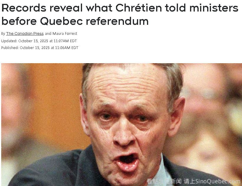 最新公开的记录显示,1995年魁北克公投前六天,时任加拿大总理Jean Chrétien告诉内阁保持冷静。 他承认魁北克人可能在10月30日投票脱离加拿大,但强调若独立成真,“没人应惊慌或草率行动”。这段闭门讲话通过新公开的内阁会议记录曝光。 此前几个月,Chrétien对公投持乐观态度,但记录显示,随着国家团结危机加剧,内阁讨论的语气发生了巨大变化。会议记录还显示,Chrétien最终决定亲自上阵,并敦促部长们在公众面前保持冷静、自信。 当时,联邦派的民调优势逐渐消失,Lucien Bouchard激发了独立支持。部分非魁北克部长要求Chrétien更多发声,他随后安排了全国电视讲话。 最终,联邦派以50.58%微弱优势获胜。Chrétien事后提醒部长们对外保持积极态度,将结果视为加拿大的胜利。副总理Sheila Copps回忆:“如果他不出手……我们可能会失去国家。” 公投前,Chrétien曾被告知“少管闲事”,并曾认为公投可能根本不会举行。春季时,独立派内部对公投问题措辞争执不断,联邦派还对胜算抱有“静默信心”。 9月,公投问题公布为“在向加拿大提出新经济政治合作前,是否独立”,被视为“陷阱式问题”。10月初,“否”阵营仍有优势,但10月7日Parizeau宣布Bouchard为谈判首席,独立派民调迅速上升。 Chrétien最后时刻的介入被认为改变了“否”阵营的情绪氛围,为最终微弱获胜奠定基础。