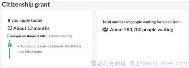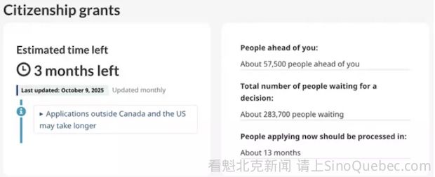 加拿大移民、难民及公民部(IRCC)近日更新网站,提供了更完善的工具,以帮助永久居留和公民身份申请人查询相关处理时间。 据Daily Hive报道,申请人现已可以使用移民部的最新网上工具,在永居及公民申请提交后对申请处理过程进行追踪,比起用一般笼统的等待时间更为准确。 根据该网站于2025年10月8日发布的最新更新,新的永久居民申请处理时间为57天。IRCC的门户网站显示会每周更新一次。 公民身份申请也做出了调整。 如果点击“公民身份”的下拉式选单,就会显示几个选项,其中之一是“授予公民身份”。 点击该选项后,它会问你是否已经申请过。如果已经申请,那么系统会要求输入申请的日期。 例如,假设你在2024年12月提交申请,系统会告知你预计剩余时间以及现在还有多少人比你先到。 若是尚未申请,则系统会显示目前的平均等待时间。本文发布时的数据显示,如果你是此时申请,平均等待时间为13个月。 IRCC表示,申请处理时间长短取决于以下因素: ● IRCC库存申请数量; ● 正在处理的人数; ● IRCC预期会收到多少申请。 IRCC指出,个人处理时间是从收到申请者的完整申请资料之日开始计数,至此人宣誓成为公民时结束;如果是未满14岁者,则会是在公民证书邮寄送达之时结束。 另外,IRCC补充道,“处理时间可能会根据我们收到的申请数量或你的申请复杂程度而有所不同。如果你的资料不完整,则申请有可能延迟或被退回。” 与此同时,其他申请类型也已更新,显示了更详细的处理时间。 |