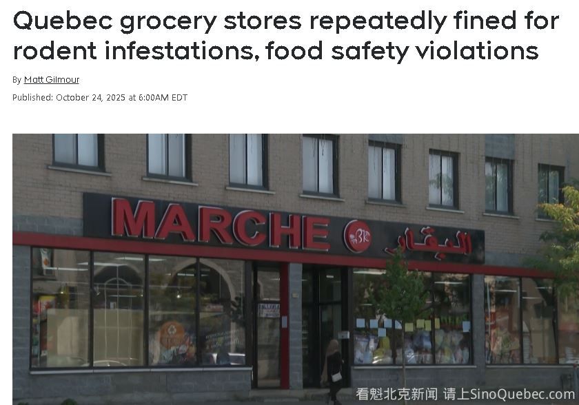 | 警告:以下内容包含部分可能令读者感到不适的图片描述。 仅在今年前九个月,魁北克的食品安全检查员就向杂货店、面包店与肉铺共开出了15万元罚单。 通过信息公开申请,CTV News与Noovo Info获得了自2021年以来超过8000页的违规报告,其中揭示出多家蒙特利尔岛上的屡犯商家。 报告显示,魁北克农业、渔业与食品部(MAPAQ)的检查员多次发现不卫生状况——包括鼠患、霉菌与交叉污染等。 BKR市场屡遭查处 在Jean-Talon西街和Laurentien大道的两家Marché BKR分店中,检查员至少七次发现鼠粪遍布货架、食物准备区及被咬破的包装。 2023年3月,Laurentien大道分店因蟑螂泛滥与生肉存放不洁被勒令关闭九天。两个月后,顾客举报食物中毒,检查员再次前往。 他们还发现该店出售的生肉内部温度高达12.5℃,远超安全标准。 2021至2023年间,两家店共被罚款2.5万元。 记录显示,店主Bilal Bakar同时经营位于Trois-Rivières附近的一家屠宰场,该屠宰场2023年也因六项违规被罚3.5万元。 食品专家Sylvain Charlebois认为,这些“惯犯”表明处罚力度仍不够:“令人震惊的是,这些店还在营业,也就是说顾客仍然会上门。” Rousseau解释,MAPAQ不会直接关闭店铺,而是与业者合作改进。 Laurentien大道分店经理则称,鼠患是自2019年开始的市政施工造成的,目前问题已解决,过去两年均符合法规。 灭鼠专家Sean-Michael Jourdain表示,听到杂货店有鼠患一点也不惊讶:“在像蒙特利尔这样老旧下水系统的大城市,这是场长期战斗。” 他指出,杂货店因食品众多极易吸引鼠类,却不能使用灭鼠药,只能依靠粘鼠板。 位于Jean-Talon西街的Ram Sweet Shop(销售印度甜点与糕点)在2021至2023年间收到八份违规报告。 检查员多次发现该店鼠患严重,且食品桶敞开、直接放地上。 CTV记者上月探访时看到情况相似。店主儿媳表示,店铺已聘请灭鼠公司并将部分制作迁至他处;其最后一次罚单是在2024年4月。