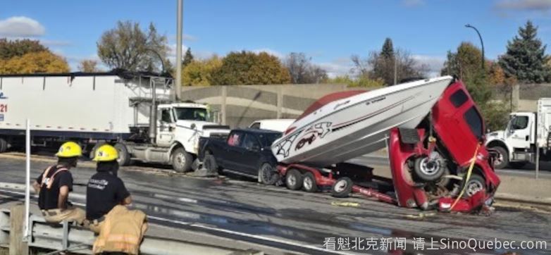 今天上午,蒙特利尔25号南向高速公路发生一起严重的连环车祸,涉及多辆汽车,其中包括两辆重型卡车,所幸仅有一人受伤。 事故发生在上午10点左右,地点位于前往Louis-Hippolyte-La Fontaine隧道方向、靠近Beaubien街的快速车道上。 据报道,至少有两辆重型卡车卷入事故。 其中一辆卡车的驾驶舱在强烈撞击下被完全压毁。 幸运的是,魁北克省警察局(Sûreté du Québec)表示,只有一人受伤,伤势并不危及生命。 这起事故导致25号高速公路南向车道被完全关闭,目前尚不清楚何时能重新开放。