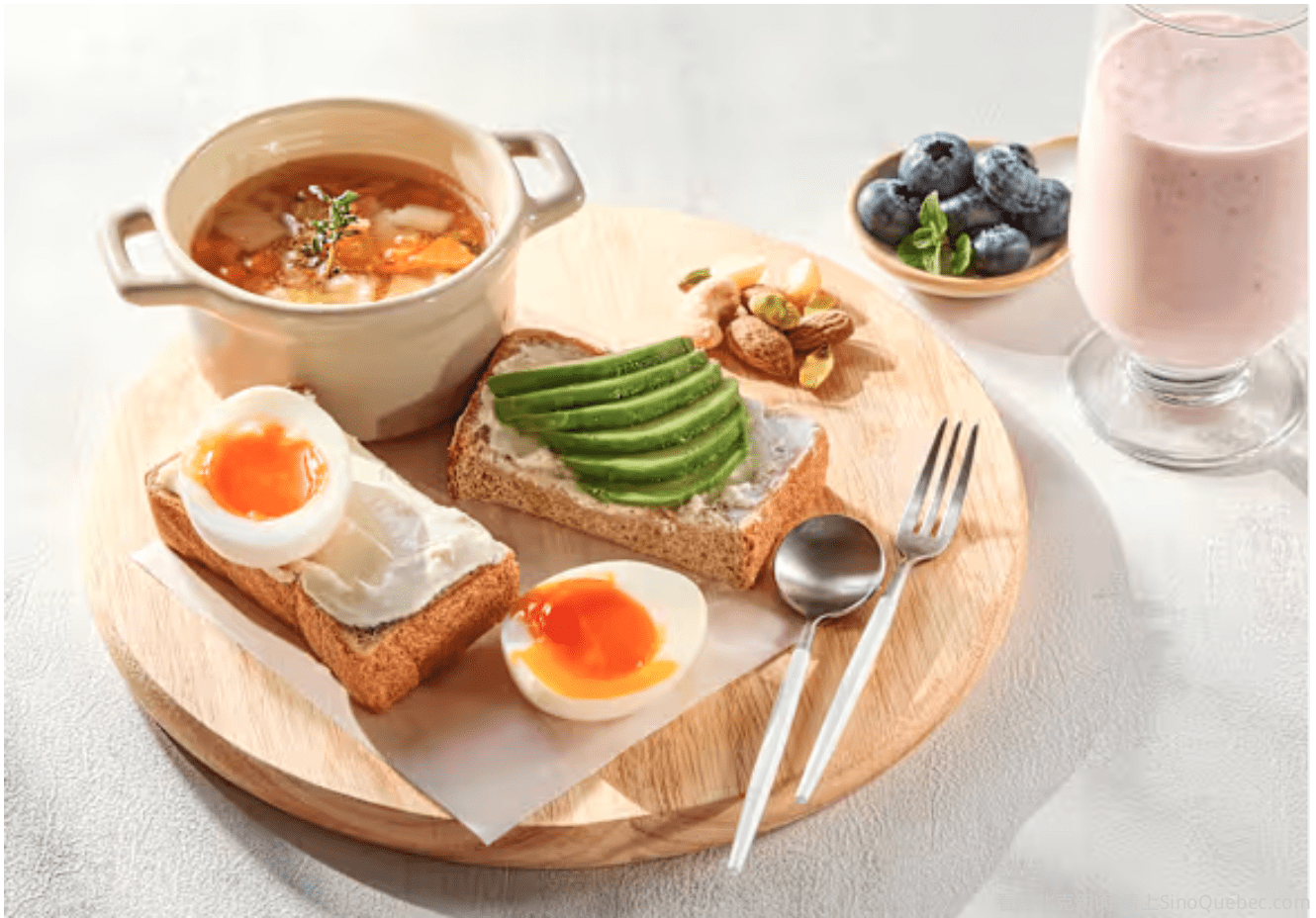 明明吃了早餐但没过多久就饿了?如果蛋白质摄入不足就会饿得快还更容易发胖。 早餐怎么吃更健康? 悉尼大学研究人员发表在国际期刊《肥胖》上的一项研究发现: 早餐蛋白质比例高,全天能量摄入少,健康食物摄入多;早餐蛋白质摄入不够,这一天会食用更多饱和脂肪、糖或酒精等高能量食物,饮食质量低。 也就是说,早饭蛋白质没吃够,就算其他正餐都吃大餐,身体还是会暗示你摄入高能量食物。 早餐蛋白质没吃够更容易发胖 研究发现,提高早餐中蛋白质的比例,不仅会让全天能量摄入减少,超重者体重和体脂也会掉得更快。 吃普通早餐或直接不吃早餐的人,体重反而会悄悄增加,部分人还会出现“越饿越想吃零食”的情况。 早餐吃多少蛋白质才算够? 根据最新版《中国居民膳食营养素摄入量》,成年女性建议每天摄入蛋白质总量为55克,男性为65克。根据早餐占全天比例的30%来计算,一顿合格早餐,女性和男性分别要摄入至少16.5克和19.5克蛋白质。 对于肝肾功能正常的人来说,如果想要达到减重、控血糖的效果,这个量还可以提高。早餐蛋白质达到25克左右,对控制食欲、帮助减重会更有效。 高蛋白质早餐可以这样组合 早餐不仅要吃够蛋白质,更要吃得丰富,一顿营养充足的早餐通常应该包括这四类食物: 谷薯类:如馒头、面包、米饭、红薯、山药等,主要提供碳水化合物、维生素、矿物质和膳食纤维。 肉蛋类:如鸡蛋、鸡肉、牛肉、鱼肉等,主要提供优质蛋白质、脂肪和多种维生素、矿物质。 奶豆类:如纯牛奶、酸奶、豆浆等,主要提供优质蛋白质、钙质、多种维生素和其他矿物质。 果蔬类:如西红柿、黄瓜、青菜、苹果、草莓等,主要提供膳食纤维、多种维生素、矿物质以及抗氧化物质。 早餐推荐你这样吃 早餐搭配一:一小碗清汤面、一个荷包蛋、几片酱牛肉和200克青菜。 早餐搭配二:一杯原味豆浆、一个烧饼、一个煮鸡蛋、几片酱牛肉和一根黄瓜。 早餐搭配三:一杯牛奶、一个煮鸡蛋、两片全麦面包,一个西红柿和一小把坚果(核桃、松子等)。 吃早餐有个“最佳时间” 不吃早餐,既不利于血糖控制,还会增加患胃病、胆结石等疾病风险。 一般来说,三餐建议时间为: 早餐7:00~8:00; 午餐11:30~13:30; 晚餐17:00~19:00。 你常吃的这些早餐搭配其实不太健康 牛奶+鸡蛋:高蛋白质缺碳水 牛奶、鸡蛋都是蛋白质含量丰富的食物,也是早餐的好选择。但是二者组合,碳水化合物含量非常低,不仅会造成蛋白质浪费,还会增加肝脏、肾脏负担,所以早餐不能只摄入牛奶、鸡蛋,还需要搭配富含碳水化合物的主食,帮助补充能量。 如果早餐不摄入碳水化合物,糖分摄入不足,也会影响工作效率和学习效率。 健康吃法: 在食用牛奶、鸡蛋的同时,搭配少油少糖的面包、馒头或燕麦等主食帮助补充能量,搭配黄瓜、西红柿等帮助补充维生素和膳食纤维。 清粥酱菜:高钠缺营养 清粥酱菜的搭配,缺少蛋白质摄入,营养不全面,并且酱菜含盐量较高,不建议长期大量食用。 健康吃法:早餐如果想喝粥,可以选择杂粮粥,比清粥更营养,同时搭配一个煮鸡蛋、几片酱牛肉和一小碟拌青菜,丰富口感的同时,还能帮助补充蛋白质、维生素和膳食纤维等营养素,营养全面又均衡。 烧饼、油条:油脂高营养少 烧饼、油条都属于热量高、脂肪含量高的食物,并且油条还经过了高温油炸,营养物质有所破坏。 健康吃法: 如果早餐吃了烧饼或油条,那么当天的午餐、晚餐都要尽量清淡,不要再吃炸、煎食物。 如果早餐选择食用烧饼或油条,建议同时搭配不加糖的原味豆浆、煮鸡蛋和青菜,帮助摄入蛋白质、维生素等营养素。 |