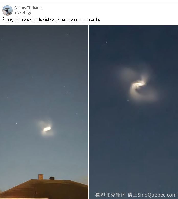 昨天周二晚上,许多魁北克人注意到天空中出现了一道光亮,这一现象引起了人们的好奇与不安。这到底是什么? 在Laval、Brossard、Sainte-Anne-des-Plaines、Shawinigan和Saint-Raymond等地,不少居民在社交媒体上分享了这道光现象的照片,看起来像一个小小的螺旋。 “今晚天空中有奇怪的光”,一位居民在网上写道。 许多网民认为,这一现象与南美洲东北海岸的圭亚那境内发射的Ariane 6火箭有关。 根据法新社的消息,火箭在18点02分升空,而这正与魁北克民众看到光亮的时间相吻合。 这并不是今年魁北克上空第一次出现这种螺旋状的光。去年八月,位于Mont-Mégantic国家公园内的天文博物馆ASTROLab曾确认,类似的光之螺旋是由Ariane 6火箭发射时“启动引擎进行脱轨操作”所造成的。 不过,截至本文撰写时,ASTROLab尚未确认这次看到的螺旋是否同样与Ariane 6火箭的发射有关。 |