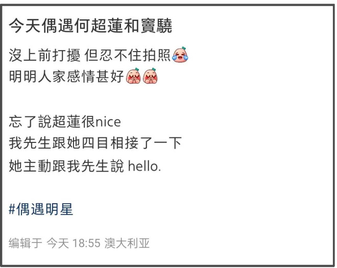在窦骁跟何超莲辟谣婚变传闻后,有网友拍到了两人在澳大利亚出游的同框照片,引发热议。 ![]() 偶遇网友称从现场看夫妻俩感情很好,还强调何超莲人也很好,家人与其目光相接了,她便主动开口打招呼。 ![]() 从网友晒出的同框照片来看,两个人之间相处和谐。看大全景,地上放了许多冲浪板,四周也有不少冲浪装备,只见何超莲穿着一套黑色的冲浪服装站在窦骁旁边,虽然站姿不够挺拔,但是身材纤细,而只露了后脑勺的窦骁两只手都很忙,似乎是侧着身子在跟老婆交流。 ![]() 放大两人的表情,能看到何超莲头发全湿,还在滴水,打着赤脚站在地上,想必是刚刚冲完浪上岸。而窦骁则是全身休闲装,黑色T恤搭牛仔裤及白球鞋,看不出任何有下水的倾向,也侧面说明何超莲是一个人冲浪,擅长极限运动的窦骁没有陪她。而两人的交流融洽,看着很自然平常。 ![]() 与此同时,窦骁另外一张单人偶遇照就看起来有些奇怪。他一个人端着咖啡站在池子边眺望远方,另一只手则正准备把手机塞回口袋。 ![]() 放大看窦骁的表情,整张脸大写的一个“愁”,根据光影来看,也不是太阳光照射的缘故。窦骁长相一直比较硬朗,给人的感觉是阳光,但显然澳大利亚的阳光并没有让他的心情变轻松,反而看起来很沉重,眉头皱纹及眼神都显得整个人很“苦”。 ![]() 看到窦骁和何超莲久违的同框照,有网友表示感情看起来还挺好,质疑离婚与否。偶遇博主斥责造谣,称有看到两个人有说有笑。窦骁和何超莲被质疑婚变的原因是两人不再秀恩爱,也没有同框偶遇照,任何节日也没有任何表态,让人觉得关系降温。如今又被偶遇同框,也是用实际行动澄清婚变了。 ![]() ![]() 也有网友看了两人的同框照,表示可能确实有婚姻问题,但没闹到要散的地步,还在想办法解决。在之前的离婚传言中,各种爆料称双方因为经济原因闹矛盾,譬如男方花大钱办婚礼未得到女方家族的认可,不让其涉足家族商业等。而这些都是外界猜测。 ![]() 窦骁和何超莲的婚姻状况具体如何,还得观察一段时间,但从何超莲的行为来看,她目前对这段感情还是较为谨慎。一天前,有网友在悉尼餐厅偶遇了窦骁,当天何超莲在外网晒了海鲜餐,CP粉认为这是女方在秀,但她并没有在国内社媒秀,可能并不想引起太多关注。 ![]() ![]() ![]() 当然,感情状况并不能凭借几张照片就定性,但是何超莲和窦骁既然又愿意公开出游了,那说明两人确实有认真对待这份感情,也想向外界传达一些信号。无论如何,还是希望两人好好经营婚姻,祝福两位。 |