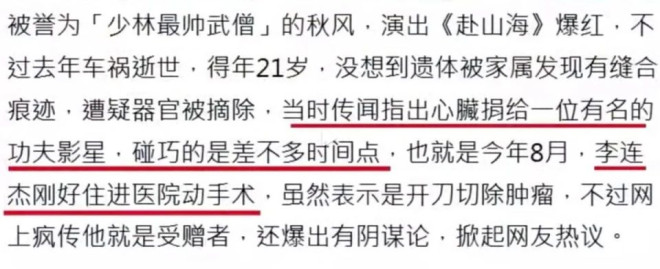 这段时间,影坛传奇李连杰忽然成了热搜焦点。 不是因为新片开机,也不是因为娱乐新闻,而是因为被造了一场堪比玄幻大片的谣言。 有谣言称他在8月住院时“换了心脏”,舆论发酵之后,有人添油加醋,声称他移植了武僧的心脏续命,还有人把已故少林弟子的故事硬生生拼进他的手术经历。 ![]() 真真假假,越传越邪乎。 一个62岁的功夫皇帝,一场普通手术,被扯成离奇续命,这荒唐程度,简直比电影还离谱。 ![]() 可李连杰面对这样的谣言情绪稳定,虽然没发长文解释回应,但他选择了更直接,也更震撼的一种方式,脱衣下水,用视频证明自己。 视频里,他赤裸上身,一跃而入私人泳池,水花溅起的瞬间,谣言自然瓦解。 ![]() 李连杰发布视频,力破谣言8月17日,李连杰发了一条“又经历一次无常的试炼”的动态,还晒出躺在病床上的照片。 因为没说明手术性质,外界立刻开始脑补。 很快,“换心脏”“濒临死亡”“移植续命”的传言铺天盖地。 ![]() 直到几天后,李连杰好友向太出面澄清,只是割除一个颈部良性肿块。小手术,割了就没事。 可流言已经疯传,甚至海外媒体都在引用各种版本。 ![]() 于是,李连杰终于亲自出面,他在社交账号发布视频,赤膊上阵,全方位展示自己的身体状态。 胸口干净、皮肤平整,没有任何手术疤痕。 他扎马步、打拳、跳水、跟狗狗玩耍,动作干脆利落,丝毫不像刚做完大手术的人。 ![]() 医学专家也跟进科普心脏移植手术必然会在胸骨处留下长疤,而且患者需长期服用抗排斥药物,不可能在短时间内如此灵活。 换句话说,他这一跳,已经把“换心脏”的谣言直接终结。 ![]() 而李连杰在镜头前那句话,也显得格外有力:“人言可畏,活在这个时代要有自己的判断,老跟着别人的舆论跑,有点麻烦。” ![]() 这句话,不只是回应谣言,更像是对整个网络时代的讽刺,造谣容易,澄清难。 一句假话传得沸沸扬扬,真相得靠当事人光膀子去证明。 62岁的他,早已不需要用作品去证明地位,却依旧选择用身体去回应荒唐的猜测。 ![]() 整件事情可以说是荒诞又滑稽,无奈又可笑。 不过网友显然对回应没什么兴趣,很多网友反而被抢镜的“豪宅泳池”吸引注意力。 ![]() 身价上亿,豪宅尽显格局视频中,李连杰从阳台走到泳池,光线柔和,水面清澈,镜头一转,整个庭院豁然开朗。 私人泳池面积不小,四周绿植环绕,露台上还有休闲桌椅,俨然是一处世外桃源。 事实上,李连杰早年投资眼光惊人。 ![]() 除了影视片酬,他还通过投资地产、做慈善、参与国际基金会,积累了可观的财富。 据外媒估算,他的净资产在 20-300亿左右,足以支撑全球多处房产、私人医疗和长期养护。 ![]() 但李连杰的“富”,从来不是高调炫耀式的,而是那种沉稳的底气。 |