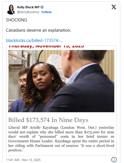 保守党质疑自由党国会议员Arielle Kayabaga为休假在短短九天内报销的惊人费用高达173,574元,“加拿大人应得到解释”,保守党正要求给出答案。 ![]() 图源:wikipedia 代表伦敦西选区、曾短暂担任国会议员领袖的Arielle Kayabaga,于3月14日上任,但随着3月23日选举启动,她的任期也随之结束。 Kayabaga是总理马克卡尼短命内阁中被撤换的11名部长之一。 然而,根据《公共账目》中Blacklock’s Reporter引用的数字,在她担任国会议员领袖的短暂期间,她在“人员”费用上支出了157,028元。 这笔计费周期包括3月21日(选举前两天),当天Kayabaga曾公开呼吁招募竞选志愿者。 议员保持沉默本周早些时候,Kayabaga未说明是否有领取公款薪资的员工同时参与了她的政治竞选——这将违反财务委员会的规定。 据Blacklock’s报道,六位数的九天支出主要反映了员工的休假补偿,一名发言人表示。 “她保留了前任到职前已在位的工作人员,”政府国会议员领袖发言人Mark Kennedy说。“Kayabaga女士没有再聘新员工。” 这名议员本周稍早签署了一封信,重复了Kennedy的说法,并拒绝接受媒体采访。 Kayabaga写道,“如有其他问题,请联系政府国会议员领袖办公室”。 枢密院办公室拒绝置评。 保守党:‘加拿大人应得到解释’来自萨省Carlton Trail–Eagle Creek选区的保守党议员Kelly Block称此事件“令人震惊”。 她在X平台上写道:“加拿大人应得到一个解释。” ![]() 另一名X用户评论说:“九天花17.5万元,这也难怪自由党议员Arielle Kayabaga买不起房。”这是指Kayabaga在2023年公开表示她无法购房。 记录显示,Kayabaga在担任议员领袖期间只参加了一次内阁会议,之后便返回选区。其时国会正处于休会状态,没有任何国会事务。 她曾在X发文写道:“我想继续为伦敦西而战,我愿与你们一起完成这件事。点击我个人简介的链接加入志愿、申请草坪牌或捐款,让我们一起做到。” 规定禁止将公款用于党派用途财务委员会规则严格限制公款用于公共事务。 《选举期间部长、国务部长、豁免职员及公职人员行为准则》写道:“资源不得用于党派目的。这包括部长的部门办公室,无论其位于何处。” “国务部长与豁免职员有责任确保部门与机构的资源——包括财政、物资及人力资源——不被用于党派目的。”准则写道。“在选举期间,他们尤其需要保持警惕,明确区分由部门与机构资源支持的政府正式事务与党派政治活动,避免甚至出现资源被用于竞选的表象。” “不清楚职责”3月14日宣誓就任后,Kayabaga告诉记者她对自己的职责尚不明确。 她说:“我在这个角色中是新的,所以我很期待学习更多,也期待协作。” 有记者问:“既然预计国会不会复会,为什么还需要一位议员领袖?” Kayabaga当时回答:“我们对此没有明确答案。我们总是需要一位议员领袖,这对我们的民主非常重要。” 她补充说,“我们希望确保团队专注于为加拿大人服务,这包括国会的各党派。这是加拿大人想要的。我们希望团结。‘加拿大队’不仅仅属于自由党,而是国会所有党派。” 有记者问:“你联系过各党派领袖了吗?” 她回答“还没有”。 记者问,“你的优先事项是什么?” 她回答“拥有一个安全的民主”。 记者又问:“你感觉如何?” 她说:“我感觉很好。” |
