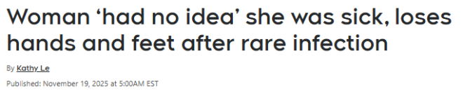 阿尔伯塔省一名女子在经历了一场快速且可怕的感染后,不得不截去双手和双脚,正在重新学习如何生活。 ![]() ![]() 图源:CTV 41岁的Jane Haley在接受CTV新闻采访时表示,一开始只是轻微的颈部疼痛,她以为是自己的颞下颌关节紊乱(TMJ)又发作了,但情况很快就急转直下,演变成医疗紧急状况。 “先是左侧颈部开始疼痛,然后左侧胸部也开始疼痛……但以前(颞下颌关节紊乱)发作时从来没有胸口痛过,我这才意识到不对劲。”Haley说。 8月24日,她前往当地医院的急诊室,没想到病情瞬间失控。 “我的血压下降,血氧下降,”她回忆说。“我被紧急送往ICU上了生命维持系统,还被置于为期8天的医学诱导昏迷状态。” “保命还是保肢” 当Haley醒来时,她注意到自己的双手已经变黑。 医生告诉她,侵袭性A族链球菌(iGAS)已进入她的血液,引发了败血性中毒性休克综合征——一种罕见但严重的感染,可能导致器官衰竭和组织坏死。 最终,她的双脚也开始变黑。 ![]() ![]() 图源:CTV “最终只能在保命还是保肢质检做选择,”Haley说。“他们选择了救命,我非常感激。” 然而,她至今也不知道感染从何而来。 “我完全不知道自己生病了,真的没有任何征兆。”她说。 目前她已经转入埃德蒙顿的Glenrose康复医院,开始漫长的适应截肢生活的过程。她已经完成了双臂和双腿假肢的测量。 在病房里,她展示了一个特殊的设备,让她可以发送短信。这是一个小小的但有意义的迹象,表明她决心重新获得独立。 “我不想沉湎于过去本可以怎样,那会让我沮丧,也会让周围的人沮丧,还会妨碍我为恢复正常所做的一切,”她说。“我要保持积极的心态,因为这样,好的事情才会发生。” 家人和朋友始终陪伴在旁,给她重返生活的勇气。 ![]() 图源:CTV 感染病例创下历史新高,健康的人也会中招 加拿大卫生部数据显示,iGAS病例在过去10年中持续上升,2023年和2024年均超过5,000例,创下有记录以来的最高总数。 A族链球菌通常只会引发轻微疾病,例如咽喉炎。但一旦细菌侵入更深层组织或血液,就可能引发危及生命的并发症,包括败血症甚至死亡。 “我们并不总能找到清晰的风险因素去预测谁会发展为重症,”蒙特利尔麦吉尔大学健康中心的传染病专家Donald Vinh医生说。“我们看到过很多原本非常健康的儿童和成年人,也会发展成重症。” Vinh医生表示,A族链球菌有超过250种不同菌株,其中一些本身就更具毒性或攻击性。 “其实很难知道该如何保护自己。有时这些感染会从割伤、伤口、甚至水痘、带状疱疹或皮损开始,”他说。 “如果你出现发烧或疼痛,再加上红肿迅速扩散,一定要尽快去医院检查。” |