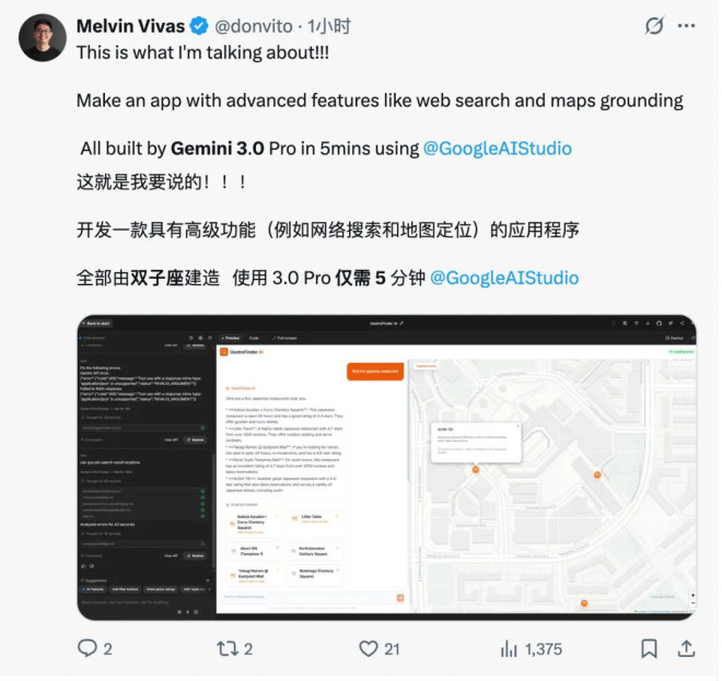 预热了快一个月的 Gemini 3 Pro,就在刚刚,正式在 Google AI Studio 上线 Preview 版,API 也同步开放。接下来将陆续上线Google的各项产品中。 没有任何多余的废话,打开 Model Card,满眼写着的只有两个字:碾压。 按照 Google 披露的测试数据,Gemini 3 Pro 毫无悬念地成为了目前地球上数学最强的 AI。在数学竞赛的“地狱模式”MathArena 里,当包括 GPT-5.1 在内的其他大模型还在 1% 上下挣扎时,Gemini 3 Pro 直接干到了23.4%。 编程能力方面,虽然在 SWE-Bench 上未拿 SOTA——但绝对属于第一梯队。Live Code Bench 的 Elo 得分超过 2400 分 ,在工具调用和终端操作基准测试中更是名列第一。 真正炸裂的是它的“视觉智能”。 对屏幕截图的理解能力高达72.7%,是目前最先进水平的两倍。这意味着 Agent 不再是瞎子,它将彻底重塑 AI 操作计算机的模式。 ![]() 但这还没完,Google 今晚还顺手扔出了一个小王炸:自家的 Agentic 编程平台——Google Antigravity。 此前网传 Gemini 3 能实现“端到端编程”,大家以为是模型成精了。但看起来,并不是模型成精,而是 Google 正在探索如何用更好的系统工程实现端到端编程。 如果说 Cursor 是目前最强的“外骨骼”,它通过 AI 补全让你写代码更快;那 Antigravity 就是奔着“自动驾驶”去的。它不再只是一个编辑器,而是一个智能体优先(Agent-first)发环境。集成了 Gemini 3 和能操控浏览器的 Gemini 2.5 Computer Use 模型,它的 Agent 能自己写代码、自己开终端跑测试、甚至自己打开浏览器验证 UI,发现报错自己修。 不讲故事,只拼肌肉。 Google 用这一波硬核发布宣告:新王已至。 有趣的是,这次连 Sam Altman 都献上了自己的点赞。:) ![]() 01 霸榜的暴力美学:不止是智商洗榜,更是 Agent 能力的变化 在 AI 圈子里,大家习惯了模型之间你追我赶的微弱优势,但 Gemini 3 Pro 抛出的这份成绩单,可以说十分耀眼。 根据 Model Card 披露的数据,Gemini 3 Pro 在推理、多模态、Agent 工具使用等关键基准上,实现了全方位的霸榜。 ![]() 让我们先看一看代表人类智力“天花板”的测试——Humanity's Last Exam(人类最终大考)。这是一个衡量学术推理极限的标尺,GPT-5.1 在此前的测试中得分为 26.5%,Claude Sonnet 4.5 仅为 13.7%。而 Gemini 3 Pro 它直接轰出了37.5%的高分。在高端推理层面,这 10 个百分点的差距,意味着模型在处理复杂学术问题时,已经具备了完全不同的理解深度。 但这还不是极限。Google 甚至还藏了一手Gemini 3 Deep Think(深度推理模式),在不使用任何工具的情况下,它在 HLE 上的得分进一步飙升至41.0%。看起来人类最后的堡垒也并不能持续很久了。 ![]() 数理方面的每一个领域,都能看出它的统治力。 AIME 2025(美国数学邀请赛):配合代码执行(Code Execution),Gemini 3 Pro 的准确率达到了惊人的100%。没错,是满分。即便是“裸考”(无工模式),它也有 95.0% 的准确率(相比之下,GPT-5.1 为 94.0%,Claude Sonnet 4.5 为 87.0%)。 MathArena Apex(数学竞赛地狱模式): 当包括 GPT-5.1 在内的其他大模型还在1%上下挣扎时,Gemini 3 Pro 直接干到了23.4%。这意味着在很多以前 AI 根本“看不懂题”的领域,Gemini 3 已经开始解题了。 而更关键的是 Agent 相关能力的提升。 Gemini 一向在多模态能力上领先,这一代更是专门优化了屏幕理解(Screen Understanding)。这是下一代 Agent 能否真正接管人类电脑的关键。 看ScreenSpot-Pro这一栏数据: GPT-5.1:3.5%(这基本意味着它是个“瞎子”)。 Gemini 3 Pro:72.7%。 这是近乎20 倍的能力碾压!这标志着 Gemini 3 Pro 已经不再是一个单纯的对话框,它具备了真正意义上的“视觉智能”,能够像人类一样理解复杂的操作系统界面。 在一些传统强项上,Gemini 3 Pro 仍然表现出色——比如支持1M Token的超大上下文窗口、对多模态数据的“原生支持”、长视频和多语言处理等等。 ![]() ![]() 有一个很有趣的标准也被 Google 挂了上来:在 一个模拟开店赚钱的基准 Vending-Bench 2 上,Gemini 3 Pro 最终赚取了$5,478.16的净资产,而 GPT-5.1 仅赚了 $1,473.43。 不过关于之前网传“彻底端到端终结程序员”的编程能力,Gemini 3 Pro 的状态是在 AI 届顶尖,但并没有“颠覆编程”。 在衡量软件工程能力的SWE-Bench Verified测试中,Gemini 3 Pro 得分为76.2%,虽然很强,但并未超越 Claude Sonnet 4.5(77.2%)拿到 SOTA。这意味着在处理超长程、极其复杂的后端逻辑时,它依然有局限性。 这也很合理。每一个大模型目前都在全力卷编程的情况下,想要在这个领域一骑绝尘确实比较难。 目前 Gemini 的能力更偏向于,还不能帮你重构整个后端架构,但如果你想写一个极具现代设计美学的网站、一个 3D 飞船游戏,或者生成复杂的 SVG 交互动画,它能通过一次提示就给出极其惊艳的、可直接运行的结果。 02 Antigravity,Agentic 编程的探索 有了最强的模型和算力,谷歌开始在应用层“掀桌子”了。今晚,谷歌扔出了一个“小王炸”——Google Antigravity。 前一阵新闻的风向还是模型公司努力收购 AI 编程应用公司呢,而 Google 这次则这么快的就发了自己的开发平台。 这不仅仅是一个新的 IDE,它是谷歌定义的Agent-first(智能体优先)开发平台。在这里,开发者从“码农”升级为“架构师”,而 Gemini 3 化身为拥有编辑器、终端和浏览器完整权限的“执行合伙人”。 为了达成这种体验,谷歌甚至在后台配置了一个“模型军团”协同作战:Gemini 3:作为大脑,负责高级推理和代码编写。 Gemini 2.5 Computer Use:作为手眼,专门控制浏览器进行 UI 验