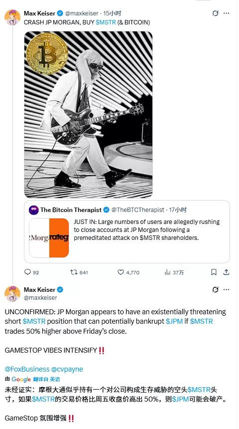 摩根大通研报警告MicroStrategy因持有大量比特币可能被MSCI指数剔除,面临最高88亿美元资金流出。报告引爆币圈愤怒,支持者发起抵制摩根大通运动,指控其做空并号召"逼空"反击。阴谋论随之蔓延:有人称美国政府制造暴跌以低价抄底,更有人将此解读为摩根大通代表的"旧金融秩序"与特朗普政府支持的"比特币新体系"之间的权力暗战。 一份来自摩根大通的研报引爆了币圈的愤怒情绪,将本就因比特币暴跌而焦躁不安的加密货币社区彻底点燃。这份研报如同一颗投入深水潭的炸弹,激起的涟漪迅速演变为一场席卷币圈的“阴谋论”风暴,指控从华尔街恶意做空,到美国政府“制造崩盘”,甚至升级为一场关乎货币未来的权力暗战。 这家华尔街巨头——摩根大通关于MicroStrategy面临指数剔除风险的警告,意外成为各种阴谋论的导火索。据华尔街见闻文章,摩根大通在研报中指出,MSCI正考虑将持有大量比特币的公司从其指数中剔除,这可能导致MicroStrategy最高面临88亿美元的被动资金流出。 这份华尔街投行研报的风险提示,在比特币跌破9.4万美元"生产成本"、市场恐慌蔓延的背景下,被币圈解读为一次“蓄意攻击”。愤怒的投资者迅速将矛头指向了报告的发布者摩根大通。比特币的坚定倡导者们在社交媒体上发起“抵制摩根大通”的运动,指控该行做空MicroStrategy,并号召投资者通过买入比特币和MicroStrategy股票,对华尔街巨头发起一场“GameStop式”的逼空反击。 ![]() (比特币价格跌破摩根大通估算的9.4万美元生产成本,为2020年7月以来首次) 随着市场情绪的发酵,各类叙事开始变得愈发宏大和复杂。有传言称,美国政府为在低位抄底比特币和MicroStrategy,一手策划了近期的市场暴跌。更具想象力的版本则将此描绘为一场终极对决:一边是以摩根大通和美联储为代表的“旧货币秩序”,另一边则是以特朗普政府、美国财政部和比特币为核心的“新数字架构”,而MicroStrategy正是这场世纪之战中的关键“桥梁”。 导火索:摩根大通研报捅了"马蜂窝" 事情的起因看似简单:摩根大通分析师团队在研报中分享了MSCI关于剔除"数字资产财库公司"的政策提议消息。 根据这一提议,任何资产负债表中加密货币占比达到或超过50%的公司都将失去指数资格,新政策预计于2026年1月生效。 作为持有大量比特币的MicroStrategy首当其冲。摩根大通估算,在MicroStrategy约590亿美元的市值中,约90亿美元来自追踪各类指数的投资工具。 如果仅被MSCI指数剔除,可能引发28亿美元的被动资金卖盘;如果其他指数提供商跟进,总流出金额可能高达88亿美元。 这一警告并非空穴来风。数据显示,MicroStrategy的股价近期表现甚至弱于比特币本身,其相对于所持比特币的估值溢价已大幅收窄。摩根大通认为,股价下跌在很大程度上已反映了市场对指数剔除风险的担忧。 随后,MicroStrategy股价应声下跌,上周五收跌超3%,报170美元,在7月中旬的时候最高触及450美元,年内跌幅达到41%。 ![]() 面对质疑,MicroStrategy创始人Michael Saylor回应称,公司并非被动持有的基金或信托,而是一家“创造、构建、发行和运营”的“比特币支持的结构性金融公司”。 币圈反击:从“抵制摩根大通”到“逼空华尔街” 然而,仅仅是传达这一消息的摩根大通却意外成为币圈愤怒的焦点。 据华尔街见闻文章,房地产投资者、比特币倡导者Grant Cardone在社交媒体上表示:"我刚从大通银行撤出2000万美元,并因信用卡不当行为起诉他们。"比特币倡导者Max Keiser则喊话:"击垮摩根大通,买入MicroStrategy和比特币。" ![]() 这场网络抵制运动迅速发酵,据报告显示,大量用户正涌向摩根大通要求关闭账户。更有甚者,币圈开始流传摩根大通对MSTR持有"存在威胁性的巨额空头头寸"的传言,声称如果MSTR股价较上周五收盘价上涨50%,可能导致摩根大通破产。 ![]() 更激进的声音则呼吁复刻2021年的“GameStop”事件。支持瑞波币(XRP)的律师John Deaton表示,如果散户投资者相信摩根大通正在做空MicroStrategy,他们可能会像当年对抗空头机构一样,团结起来推高股价。 ![]() 同时,批评者还翻出摩根大通与Jeffrey Epstein的历史联系,指责这家银行曾因监管Epstein账户和金融活动而面临国会审查和传票。比特币支持者试图将这些历史问题与当前的市场动向联系起来,营造出摩根大通"蓄意攻击"的叙事。 “阴谋论”升级:美国政府“制造崩盘”以抄底? 在摩根大通成为众矢之的的同时,更为宏大的阴谋论开始在币圈传播。 比特币倡导者Max Keiser等人声称,美国政府可能正在策划收购MicroStrategy和Coinbase,而近期的比特币抛售正是这一计划的一部分。 据这种理论,美国政府官员希望MicroStrategy的市净率接近1.0,因此"制造"了比特币的崩盘以压缩其溢价。支持者声称: "美国正在考虑对MSTR进行数十亿美元的投资,他们需要市净率达到1才有投资意义,所以他们制造了比特币的崩盘。" ![]() 一些分析指出,比特币的价格模式显示出明显的地域差异:美国交易时段推动比特币下跌,而亚洲市场持续买入。这种差异被解读为美国政府有组织抛售的"证据"。 区块链数据显示,美国政府通过此前的资产没收持有超过32.6万枚比特币,这为"政府积累理论"提供了更多想象空间。支持者声称,政府正试图通过打压价格来实现"100万枚比特币储备目标"。 "摩根大通大战特朗普、财政部"的宏大叙事 在所有流传的“阴谋论”中,最为复杂且