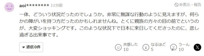 今天,也就是11月25日下午,日本大阪府泉佐野市的关西国际机场第一航站楼发生一起令人痛心的意外事件。一名20多岁的中国籍男性游客从四层坠落至一层,最终不幸身亡。 根据日本警方通报,在今天下午2点30分左右,这名年轻的中国游客一个人坐在关西机场第一航站楼四层,国际线出发大厅外侧的墙面上,双腿朝外悬空,姿势十分危险。 这里是旅客从出租车、巴士下车后进入航站楼的区域,出入人员非常多。目击者看到如此危险的动作,担心发生意外,立即报了警。 让人意想不到的是,在警车到达后,情况却出现了急转直下的变化。这名年轻男子在看到警车靠近后,突然从坐姿变成了整个人挂在外墙之外。警察迅速冲上前试图拉他回到安全区域,但男子最终还是挣脱支撑,自行松手掉落了下去。 男子的身体先撞落在二层的外部“屋檐”结构上,然后弹落至一层地面,跌落高度极大,导致伤情极为严重。虽被紧急送往医院,但最终仍不幸去世。 不幸中的万幸是,男子这次坠落过程中并未波及到其他旅客,也没有造成他人的二次伤害。 据日本警方调查称,这名男子是与母亲一同来到日本旅行,原本只是一次普通家庭出游,但却因这次坠落意外,演变为令人震惊和遗憾的悲剧。 ![]() 整起事件的事发原因和来龙去脉警方目前尚未公布具体细节,事发当时,男子为何会坐在建筑外墙的狭窄边缘?为何在警车出现后突然悬挂在外都不得而知。 也没有迹象表明现场存在他人推搡或明显外力。事件背后是否涉及心理因素、身体不适,还是误判环境导致的危险举动,都仍有待进一步调查。 ![]() 年轻男子之所以看到警车靠近就整个人挂在外墙上极有可能是误解了要被警方“警告”,而造成了紧张慌乱,下意识做了危险行为。 ![]() 关西机场T1航站楼建成已有多年,外部结构设计存在一些类似“矮墙”“栏台”类的空隙区域。虽然并不属于旅客活动空间,但在未设明显警戒的情况下,仍可能让旅客误以为可以短暂坐靠。 目前,日本警方已封锁现场、调取监控,机场方面也可能对相关区域进行重新评估。 ![]() 因为是挑空结构,一旦坠落冲击力就会非常大。不过,正常情况下不可能会出现“快要掉下去”的情况。我能想到的情形是:他可能把手机伸到类似栏杆外侧去操作,结果差点掉下去,情急之下整个人探出身体? ![]() 到底当时是什么情况呢?看起来像是非常危险、鲁莽的行为,也有可能是这位男性本身带有某些障碍。尤其是在亲属面前发生这样的事情,实在是太震撼、太令人难以接受了。本来是在这样的环境下选择来日本旅行,却遭遇了如此悲惨的事情,真的让人感到非常痛心。 ![]() 明明有很多孩子在使用那里,以前却从未发生过事故。那里有类似围栏的安全设施,本来不可能掉下去的。 ![]() 我在警方到达的同时目击了现场,看到他一动不动,头部流了大量的血。真的非常担心。希望他平安无事,千万要活下来。 近年来,多国机场都曾发生旅客在栏杆、平台边缘拍照、休息甚至抽烟时发生坠落事件,今天这一事故再次提醒人们,机场并不是一个随意倚靠、攀爬的空间,尤其在高度较高、结构复杂的位置,更有必要进行提示或隔离。 每年都有大量中国游客前往日本,发生这样的事令人痛心,也带来几层值得思考的现实提醒。 航站楼外的结构复杂,部分区域并非为旅客设计,一旦误坐或倚靠,失足风险极高。在旅途中无论是身体不适、疲劳、情绪波动,还是因旅程压力导致的行为异常,都需要及时和身边的人沟通。最后,一定要有这样的意识,那就是机场工作人员的目的通常是排除风险,而非追究责任,旅客应尽可能保持冷静、听从指示。 ![]() 这起坠落事故对于这位年轻男子的家庭来说,无疑是无法挽回的巨大悲剧。对其他旅客而言,也是一次沉重提醒,再熟悉的机场,再普通的旅行,也可能隐藏意想不到的危险。出门在外,无论身处何处,安全始终应该排在第一位。 愿逝者安息,也愿类似的悲剧不再发生。 |