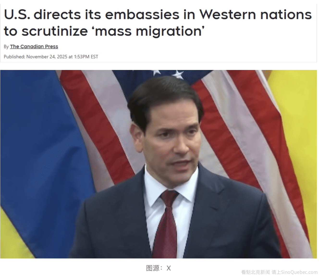 在美加关系愈发紧张的时刻,特朗普政府突然向其驻渥太华使馆下达最新指令,要求美国外交官向加拿大施压、敦促削减移民规模,并将“大规模移民”形容为对西方文明的“生存性威胁”。这一动作迅速引发国际关注,面对外界质疑,加拿大移民部长Lena Diab首度回应:“加拿大的移民水平由我们自己决定。” 据《纽约时报》报道,美国国务院已指示其驻加拿大及其他西方国家的使领馆,审查“大规模移民”的影响。上周发给各地使馆的电文要求驻渥太华、新西兰、澳大利亚和西欧国家的外交官,报告大规模移民对人权和公共安全的影响,并称其为“对西方文明的生存性威胁”。 在美国国务卿马可·鲁比奥(Marco Rubio)转发的一则社交媒体帖子中,美国国务院表示,官员们将“敦促各国政府采取大胆行动,保护本国公民免受大规模移民带来的威胁”。 该部门表示,官员们还将报告“那些惩罚反对持续大规模移民的公民的政策,并记录具有移民背景的人所犯的罪行和侵犯人权行为”。 本周一,国务院高级官员表示,美国并不是试图告诉其他国家应该如何治理,而是提醒他们不要从美国认为的“文化截然不同”的国家大量引入人口。 特朗普总统长期以来批评欧洲的移民政策,而副总统万斯(JD Vance)今年早些时候在慕尼黑安全会议上发表讲话,痛批欧洲民主国家在移民和言论自由问题上的做法,引发广泛关注。 万斯在上周五的社交媒体帖子中也把矛头指向了加拿大。他将他所谓的加拿大“生活水平停滞”归咎于“移民疯狂”。 万斯写道,“恕我直言,我的加拿大朋友们,你们的政治总是执着于美国:你们生活水平的停滞与唐纳德·特朗普毫无关系,也不是CBC告诉你们要怪的那个妖魔的错。”“责任在于你们的领导层,是由你们选出来的。” 这名国务院高级官员在周一承认,澳大利亚、新西兰和加拿大等国家的移民情况与欧洲盟友“有显著差异”。 “但我们看到的,是世界上许多自由民主国家越来越倾向于完全接受‘全球化移民叙事’。”这名官员说,“这种观念认为,你可以大规模引入来自不同文化,甚至是完全不同文化的人,并假设一切都会顺利融入。但案例研究表明,事实并非如此。” 该官员表示,他们特别担心移民带来的“人口置换”、住房压力以及形成对移民“区别对待”的“双轨制司法体系”的可能性。该官员主要指向欧洲的问题,并未具体提到加拿大。 这封电文要求各国使馆收集美国《人权报告》所需的信息,并传达美国愿意就此议题开展合作的立场。 在回应这一问题时,加拿大联邦移民部长Lena Diab表示,她并不了解有任何来自特朗普政府、通过美国驻渥太华大使馆向加拿大施压要求降低大部分移民水平的指令。 当被问及加拿大是否会在制定移民配额时采纳美国的建议时,Diab表示,她在决定未来加拿大的移民水平时,已与经济学家、部门官员以及全国各地的利益相关方进行了数月咨询。 “坦白说,各省和地区才是我的主要合作伙伴,因为加拿大的移民体系是省级、地区级与联邦共同管辖的。”她说,“在制定移民水平规划时,我咨询的就是这些合作方。” 加拿大长期以来以其多元文化背景为傲。但近年来,对高水平移民的支持度大幅下降,部分原因是紧张的住房市场和高失业率,尤其是年轻群体。 加拿大总理卡尼已承诺要让移民“得到控制”。其自由党政府计划在2026年减少临时工人数,并将未来三年学生签证的计划数量削减近一半。 联邦政府也计划在2026年减少难民、受保护人士以及以人道主义理由获得永久居留的人数。 这名不具名的美国官员表示,加拿大在移民问题上的行动对特朗普政府十分重要,并补充说:“我们希望加拿大的朋友们也能在这个议题上展现强硬立场。” 该官员说:“在加拿大,有很多人表达了对移民流入的严重担忧,就像美国一样。而特朗普总统已经决定勇敢而果断地回应这种呼声。” 在特朗普的第一任期内,加拿大的难民系统被大量越境者挤爆,他们利用了《安全第三国协议》中的漏洞,即绕过官方口岸入境的人仍可申请难民保护。 该漏洞在拜登政府时期被关闭,导致从美国通过非官方边境口岸进入加拿大的人数出现断崖式下降。 |