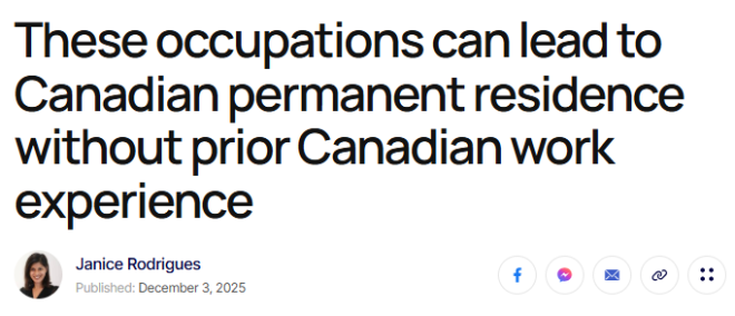 2. 在过去3年内,必须在符合类别的紧缺职业中拥有至少6个月连续、全职工作经验(或等量兼职经验)。国外经验完全有效。 CBS抽签的综合评分系统(CRS)门槛通常低于CEC或省提名(PNP)等其他类型的抽签。这意味着,只要你的工作属于紧缺职业,即使CRS分数不高,也可能直接从海外获邀。 哪些职业最吃香?2025年5大紧缺类别公布 加拿大公布了2025年5大紧缺职业类别: