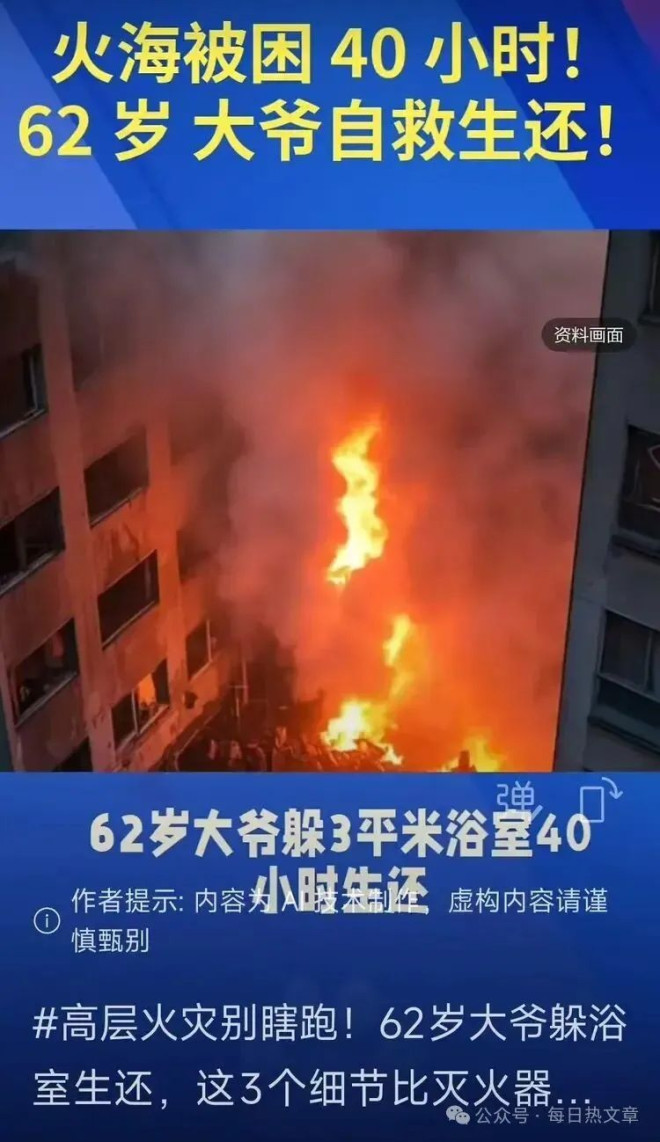 高层起火后,到底该往上跑、往下跑,还是原地等救援?很多人一慌就乱了阵脚,反而把自己置于危险中。 香港那场大火里,一位 62 岁大爷被困 23 楼,门外火舌乱窜、浓烟滚滚,他没瞎闯,靠着几个简单动作在卫生间里撑了 40 多小时,最终成功获救。他的自救方法被消防员夸 “教科书级”,今天就拆给大家,关键时刻能保命。 一、先判火情:“小火快跑,大火关门” 是黄金法则 高层起火后,第一反应不是跑,而是判断能不能跑。国家消防救援局早就明确了核心原则:小火快跑,大火关门。 如果只是自家起火,火势没挡住逃生路,或者楼道里没烟雾,就赶紧撤离。撤离时记得随手关房门,能延缓火势蔓延,还得弯腰低姿走,用湿毛巾捂紧口鼻,全程走楼梯,电梯坚决不能碰。 要是门外已经浓烟滚滚,或者能摸到门板发烫,说明火势已经封死通道,这时候千万别硬闯。楼道里的高温和有毒烟气,可能几秒内就让人窒息,不如退回室内固守待援,就像那位香港大爷一样。 二、选对避险地:有窗卫生间是 “临时安全屋” 大火封门后,找对避险地方至关重要。香港大爷选了 3 平方米的卫生间,这个选择特别明智,但不是所有卫生间都适合。 得选有对外窗户的卫生间,没窗或窗户太小的不行,容易缺氧窒息。卫生间里有水,能用来降温、打湿衣物,瓷砖墙面也能隔热,大爷待的卫生间才 60 摄氏度,而外面走廊已经 800 多摄氏度,温差特别大。 如果没有合适的卫生间,也可以选有防火门的卧室,关紧房门后同样能隔绝浓烟和高温,比乱闯楼道安全多了。 ![]() ![]() 三、自救三步法:堵烟、降温、求救,一步都不能少 找到避险地后,这三个动作一定要做扎实,能为救援争取时间。 第一步是堵烟。大爷用湿毛巾贴满门缝,还把床单混着牙膏堵住缝隙,这招特别管用。烟雾里的一氧化碳是隐形杀手,湿毛巾、衣物能挡住大部分烟尘和有毒气体,没有牙膏的话,用湿毛巾、胶带甚至湿纸巾都能代替,关键是把门缝堵严实。 ![]() 第二步是降温。可以不断往门板上泼水,降低门板温度,延缓被烧穿的时间。同时在卫生间里接满水,把毛巾、衣物浸湿,既可以裹在身上降温,也能随时补充湿毛巾堵缝。 第三步是求救。大爷每隔半小时就敲一次瓷砖墙,这种方法比大喊大叫管用,声音能传得更远。还可以打开窗户通风(确保窗外无烟气),在窗边挥舞鲜艳衣物,或者晚上用手电筒闪烁,让救援人员快速发现自己。记得及时打 119,说清具体楼层和位置,保持电话畅通。 另外要避开几个致命误区:千万别盲目跳楼,高层跳楼死亡率极高;别中途返回火场拿东西,火场环境瞬息万变;别开窗透气,会让火势和浓烟更快涌入;撤离时别带重物,耽误逃生时间。 其实高层火灾自救,关键在于不慌乱、选对方法。香港大爷的经历告诉我们,遇到大火不用怕,记住 “小火快跑,大火关门” 的原则,选对避险地,做好堵烟、降温、求救这三步,就能大大提高获救概率。 这些自救知识特别实用,不管是自己住高层,还是家里有老人小孩,都该牢牢记住。你还知道哪些高层火灾自救技巧?身边有没有类似的自救案例?欢迎在评论区分享,也别忘了点赞转发,让更多人学会这些保命技能! |