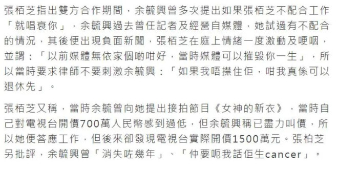12月5日,有关于违反合约案第三次开庭,张柏芝现身在了香港法庭。 据说当时张柏芝的状态无精打采,想来也是。 毕竟这起案件张柏芝一旦败诉就要赔付对方超数千万,换谁能精神得起来呢? 了解过事情的来龙去脉后,你会支持哪一边呢? ![]() 12月5日当天,张柏芝从一辆黑色MPV车上走下,身边有两名男士为其开启车门并护航。 张柏芝头戴墨镜与口罩,身穿黑色西服外衣,手拿黄色包包步履匆忙。 从近拍角度来看张柏芝面无表情,看起来并不开心的样子。 其实这场官司已经打了许多年了,将张柏芝告上法庭的竟然是她自己的经纪人余毓兴! ![]() 从观众的角度来看,各个艺人和经纪人之间的关系都是相辅相成的。 如果没有经纪人为其招揽资源,明星再有演技与歌喉也无济于事。 而明星如果是个扶不起的阿斗,那么即便经纪人再有能力也无法在行业立足。 所以这二人之间的关系其实亦师亦友,在彼此交流之间也充满着现实利益。 但张柏芝和余毓兴最终是被这现实利益打败了,于是二人才会闹到如今这般地步,这是怎么回事呢? 原来当初余毓兴表示:张柏芝收取了某项预支片酬后,却没有履行电影合约。 也就是说张柏芝在收取了4176万元片酬后,没拍戏、没干活。 余毓兴表示:这同时违反了经理人合约,于是将张柏芝告上法庭。 ![]() 张柏芝被控告的具体过程是: 余毓兴说: 张柏芝与自己签下时长为8年的合同,在这一纸合约中,规定余毓兴是张柏芝唯一的经纪人。 当年张柏芝处境困难,再加上自己父亲和张柏芝的父亲是好友。 基于多方面的情感关系下,于是自己就提前支付给了张柏芝高达4267万元的片酬费。 但按照合约中所提,张柏芝需要参演6部电影才行。 可最终这份合约最终没有被完成,于是余毓兴控告张柏芝违约,要其至少赔偿1276万元! ![]() 可张柏芝却随即表示: 二人之间只是单纯的商业关系,在感情上其实并没有那么熟悉,同时还对余毓兴所提出的合约提出真假质疑。 更炸裂的是张柏芝表示:他们在彼此合作期间,自己曾被余毓兴多次威胁,说如果不配合工作,就抹黑自己。 事情到此,可谓是双方各执一词。 而这场法院审理其实早在2020年就已经提起了诉讼,此前已经开庭过两次,但是张柏芝都没有亲自到场。 这是第三次开庭,直至今日张柏芝才亮相庭审现场。 ![]() 可能是考虑到了当日现场会有很多媒体朋友,所以张柏芝将自己捂得较为严实,同时配备了安保为自己一路护航。 从张柏芝出现的自始至终,她身边的助理及保镖都严阵以待,以防有突然事件的发生。 对此有网友评论:“这阵仗似乎有些大了,在法院门口能发生什么事呢?” 不过,张柏芝这样做或许是出于其精神压力大。 所以自她出现之时,她带给众人的感觉就是精神憔悴,而且她整体样貌也变得消瘦,手背上的骨头凸起看起来颇有沧桑模样。 不过话说回来,任谁摊上这样的事,谁不憔悴呢? |