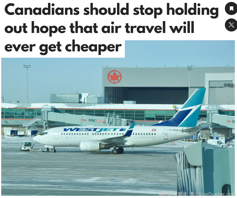 联邦交通部长Steven MacKinnon表示,加拿大人不应指望国内机票价格会明显下降。他认为,地理环境、气候因素以及市场现实使得在加拿大境内乘坐飞机注定是一项成本高昂的出行方式。 图源:blogTO MacKinnon上周在出席温哥华贸易委员会(Greater Vancouver Board of Trade)的一场会议上发表讲话,承认公众长期以来对高昂票价感到沮丧,尤其是往返于小型及偏远社区的航线。 目前公众情绪已经达到一个临界点:许多加拿大人觉得,除了不断上涨的基础票价外,他们还要为曾经免费的标准服务支付额外费用——即所谓的“变相涨价”。而这一趋势发生在工资增长停滞、加拿大经济前景不明朗的背景下。 例如,西捷航空(WestJet)已于2024年开始对其最基础的经济舱(国内及加美跨境航班)收取随身行李费;加航(Air Canada)也在2025年初采取了类似做法。 随后在2025年9月,西捷航空进一步开始对部分机型进行“升级”改造:基础经济舱采用不可后仰的固定座椅,并通过更密集的座位布局来容纳更多乘客。不过,在2025年圣诞节前夕,面对巨大的消费者舆论压力,西捷航空宣布暂停这一座椅改装计划。 在机票价格上涨、服务缩水、以及航班可靠性和客户服务饱受质疑的背景下,MacKinnon将航空业现状归结为结构性现实,而非航空公司趁机牟利。他认为,推高票价和改变服务模式的许多压力,来自行业短期内难以掌控的因素。 MacKinnon指出,加拿大是世界上国土面积第二大的国家,加之严酷的气候条件,本身就构成了难以克服的结构性挑战。 “我并不是想为谁找借口,但我们国家幅员辽阔,而且是一个偏北欧气候的国家,在加拿大提供航空服务本身就非常困难,”他说。 虽然有批评人士认为引入更多外籍航空公司进入加拿大市场会增加竞争并降低票价,但MacKinnon表示,大多数国际航空公司只对温哥华和多伦多等大型枢纽感兴趣。 “如果你身处基洛纳(Kelowna)、新不伦瑞克省巴瑟斯特(Bathurst),或者拉布拉多的瓦布什(Wabush),服务这些社区并不总是符合经济效益,”他说。 他指出,加航和西捷航空仍然是服务中小市场的关键航空公司,同时还有一些“规模较小、灵活机动”的区域航空公司,承担着连接偏远地区的重要角色。但他也强调,在加拿大运营航空业务的经济现实,意味着航空公司成本更高,最终仍会转嫁到乘客身上。 “很遗憾,在加拿大乘飞机出行注定是昂贵的,这是自然条件决定的结果,”他说。 他承认,国际航班往往比国内航班更便宜。例如,从温哥华飞往洛杉矶的票价,常常低于飞往加拿大偏远城市的价格。 “没错,确实如此,”他说,“但这背后存在规模经济,以及任何做生意的人都能理解的各种原因。”他还提到天气因素,指出洛杉矶这样的目的地拥有更稳定的飞行条件,而像Yellowknife这样的北部城市则完全不同。 尽管挑战重重,MacKinnon仍表示,加拿大拥有“一批非常优秀的航空公司”,它们为许多对国家经济和社会结构至关重要的社区,提供了总体上较为可靠的航空服务。他表示,联邦政府将继续努力控制成本、尽可能保持票价可负担,但加拿大人也需要对地理和市场力量所设定的上限保持现实预期。