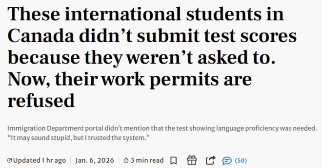 明明提前考试、按流程操作、反复核对材料,却还是被移民系统一刀拒掉。 最近,加拿大各地的留学生突然发现,自己的毕业后工签被拒,理由是“未上传语言成绩”,而申请系统从未明确提示需要提交。 拒签意味着立刻停工、身份失效,甚至可能被要求离境,这让越来越多留学生陷入焦虑。 ![]() ![]() 图源:51记者拍摄 中国留学生谨慎准备,却仍被拒签 据《多伦多星报》报道,国际学生徐涵(Han Xu,音译)表示,她一直密切关注可能影响自己学业和移民前景的政策变化。 她清楚了解毕业后工签新增的语言能力要求,因此在完成女王大学(Queen’s University)教育学博士项目之前,就已提前参加了英语考试,并在5月递交申请前做好了准备。 她严格按照线上流程操作,在点击提交前,反复核对自己是否填写了所有要求的信息,并上传了系统提示的全部文件。 然而,申请系统中并没有任何地方明确提示需要上传CELPIP语言成绩。因此,当她在10月因“未提交语言成绩”而被拒签时,感到十分震惊。 拒签案例激增,合法身份瞬间失效过去几个月,移民专家发现,越来越多像徐涵这样的国际毕业生,因未上传语言测试成绩而被拒发毕业后工签,不仅失去了在加拿大的合法身份,还必须立刻停止工作,并面临被遣返的风险。 一些人向移民部门申请复议,另一些人则选择重新递交申请,希望能获得“第二次机会”。 “听起来可能有点傻,但我真的信任这个系统,”徐涵说,“这些年我的学习许可和签证申请一直都是自己办的。” 她2016年来到加拿大,最初就读英语教师培训项目,之后完成了硕士和博士学位。 “系统里没有任何提醒或警示告诉你应该把语言成绩上传到哪里。如果缺少必要文件,系统本就不应该允许提交申请。” 直到被拒签后,她才发现,关于如何上传语言成绩的说明,被埋在移民部网站的另一个页面中,很少有人会注意到。 呼吁移民部长介入学生们已发起线上请愿,呼吁移民部长Lena Metlege Diab介入,恢复被拒的申请。 ![]() 图源:change.org 尽管语言要求在2024年底已正式生效,但温哥华移民律师陶律师(Will Tao)指出,问题直到今年秋天才集中爆发,原因在于严重的审理延误。目前,在加拿大境内提交的工签申请,审理时间已超过210天。 移民部门以“技术限制”为由,称申请系统无法新增语言成绩的直接上传栏位。对此,陶律师表示难以理解,并认为至少可以在系统中添加一条简单提示,告知申请人应在何处上传材料。 “这些说明只出现在另一份政策文件里,需要花大量时间搜索才能找到,”他说,“整个流程是自动化的,现在却出现了大量拒签,只因为你没上传一个系统从未要求你上传的文件。” 《星报》向移民部询问此类拒签问题后不久,陶律师注意到,相关上传说明已被补充到另外三个网页中,但申请系统本身仍未更新。 ![]() 图源:canada.ca 数百份工签申请被拒移民部表示,自从语言能力要求实施以来,已收到约16.2万份毕业后工签申请,截至9月,共有815份因材料缺失(其中可能包括语言成绩)而被拒。 移民部称,语言能力要求及相关提醒已在其网页中标明,申请指南也已同步更新。 移民部在一封邮件中表示:“申请人有责任提交完整且准确的申请。” 加拿大总理卡尼的核心移民政策目标之一,是将整体移民规模恢复到“可持续”水平,并计划在2027年底前,将临时居民比例降至全国人口的5%。 目前这一比例为6.8%,其中,国际学生和持工签毕业生占据相当大的比重。 陶律师表示,令人担忧的是,移民官员似乎并不急于通过调整申请系统本身来解决问题。“这或许正是他们控制临时居民数量的一种方式,”他说,“但我希望政府能对此作出解释,说明为什么这些学生没有得到应有的系统调整。” “经济压力巨大,也非常煎熬”来自印度的学生Teerthkumar Patel于2024年12月从温莎大学机械工程专业硕士毕业,曾在汽车行业从事机械装配和质量检测工作。 这名24岁的基奇纳居民在去年10月22日毕业工签被拒后,立刻辞去了工作。为避免进一步问题,他已向移民顾问支付近2000加元,用于申请复议、身份恢复及新的工签。 “这些程序没有明确的时间表,”Patel 说,“可能要等几周,也可能要等几个月。我有一点应急储蓄,但这真的让人身心俱疲。” 徐涵也已停止了大学的研究项目,并加入了因语言成绩问题被拒工签的学生社媒群组。她表示,有些未提交语言成绩的申请人曾收到移民官的补交提醒和指引,但在群里看来,这些处理方式显得随机而缺乏一致性。 她说:“我不知道自己是不是该收拾行李回中国了。”为了省钱,她暂时住在朋友家中,但1月初就必须搬走。 “这次拒签会留在我的记录里,未来申请其他国家的签证或出行时都必须如实披露,这会对我的前途造成影响。” |