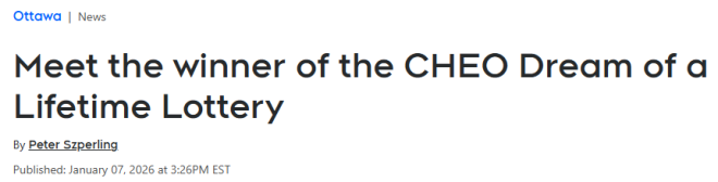 Aimee Savard在新年伊始就迎来了人生大礼——她赢得了CHEO“一生一次的梦想”彩票(CHEO Dream of a Lifetime Lottery)的头奖:位于安省渥太华地区Manotick的一套Minto梦想豪宅。 “我真的太激动了,都不知道该说什么,”Savard周三在接受CTV News Ottawa采访时说,“到现在我还在消化这件事,但当然非常感恩,也很开心能来到这里。” ![]() ![]() 图源:CTV News Ottawa CHEO基金会表示,这份价值370万加元的头奖包括“一套由Minto打造的惊艳梦想之家,由Minto的Karen van der Velden设计,并由Tanner Vine Interiors的Tanner Vine负责室内装饰。” “我一开始坚信这肯定是骗局,”Savard说,“他们给我打电话时,我还在想,‘这不可能是真的吧?’所以我把我妈妈一起带来了。我们一路都在聊有多兴奋,觉得这真是一个开启新年的完美方式。” Savard表示,她是在周三早上(1月7日)接到中奖电话的。 这套位于Manotick的Skysail Place的房子面积约5,360平方英尺,共两层,并带有一个地下室。 ![]() 图源:CTV News Ottawa 头奖还包括:10万加元现金、一辆2025款奔驰GLC 300 4MATIC SUV、来自W.O. Stinson & Sons的50张每张100加元的加油卡、为期一年的每两周一次家政清洁服务、Farm Boy提供的5,000加元礼品卡,以及Adam’s Moving提供的搬家服务。 根据CHEO“一生一次的梦想”彩票官网介绍,这套房子拥有两间主卧和两间配置齐全的次卧,主楼层的大客厅挑高设计,拥有“气势十足的双层通高天花板”。 屋内装修图片如下:![]() 图源:CTV News Ottawa ![]() 图源:CTV News Ottawa ![]() 图源:CTV News Ottawa ![]() 图源:CTV News Ottawa ![]() 图源:CTV News Ottawa ![]() 图源:CTV News Ottawa ![]() 图源:CTV News Ottawa ![]() 图源:CTV News Ottawa ![]() 图源:CTV News Ottawa CHEO基金会表示,这是CHEO梦想彩票历史上规模最大的一届,总奖品价值超过520万加元,其中就包括这套位于Manotick的Minto梦想豪宅。 周三同时公布的其他中奖者还包括Luke Clarke,他赢得了50/50抽奖,奖金高达1,054,142.50加元(105.4万加元)。 “我们一直希望自己能中奖,但从来没真觉得会轮到我们,”Clarke在接受CTV News Ottawa采访时说。 ![]() 图源:CTV News Ottawa 据悉,CHEO不是一种普通彩票,而是一项慈善募款彩票。CHEO全称是 Children’s Hospital of Eastern Ontario。CHEO基金会每年都会举办 Dream of a Lifetime Lottery,目的是为儿童医疗、科研和医院运营筹款。彩票的盈利主要用于支持CHEO儿童医院。 |