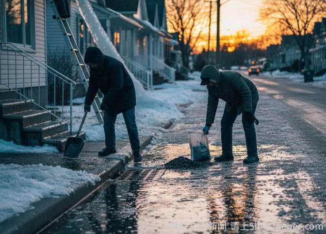 未来数小时,魁北克省将迎来回暖并伴随降雨,这很可能会把街道变成“溜冰场”。当冰层覆盖住自家出入口和通道时,以下是3个更好应对的建议。 排水沟 冬季时,冰会在屋檐排水沟中堆积。当天气回暖,冰会融化成水,增加排水沟的重量,可能因负荷过重而脱落。 建议尽量清理排水沟,同时不要忘记排水沟底部用于引流的伸缩软管,以便排水顺畅。 这些伸缩软管在结冰时容易损坏,因此需要在寒冷天气中检查并更换。 清理雨水口 街道上的雨水口格栅可能已经被积雪或冰层覆盖。 建议清理这些区域,让水能够顺利流走。 如果雨水口未被清理,积水就会堆积,并最终结冰。 为入口和台阶除冰 另一个建议是为住宅入口和台阶除冰。 在这些地方使用融冰产品非常重要,否则会变得十分危险。 此外,也可以回收并利用壁炉里的炉灰来铺在冰面上防滑。