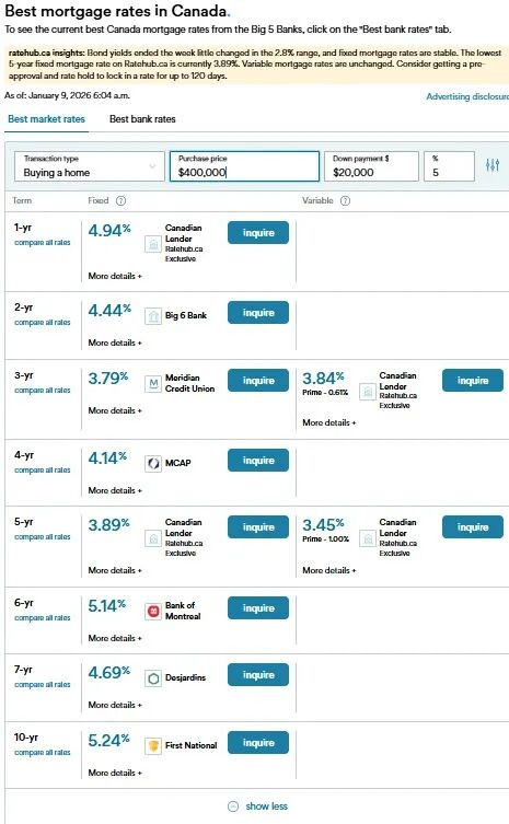 跨入2026年,专家预计未来几个月房贷利率大概率会保持不动。虽然全球局势有点乱,但通胀稳定、经济撑得住,两边一抵消,利率就这么卡在原地。 ![]() Rates.ca 的房贷专家 Victor Tran 表示,除了道明银行(TD)突然通知经纪人要把三年期固定利率调高 0.10%、浮动利率调高 0.05% 之外,大部分银行都按兵不动。加拿大国家银行甚至还小降了 0.05%。而那些没动利率的银行,也准备靠促销来抢客户。 五年期国债收益率也没啥波动 影响固定房贷利率的五年期国债收益率,从 12 月中旬到现在一直在 2.6% 到 2.9% 之间晃悠,之前还短暂冲上 3%。Tran 说,现在房贷利率大概就在 3% 高段到 4% 初段之间,看你是不是投保贷款。 根据《全球投资者》的报道,房贷专家 Victor Tran 直言:“现在没有什么明显因素会让利率涨,也没有什么会让它掉”。 ![]() 虽然 专家预计房贷利率短期内不会大变动,但大家别再等“神仙降息”了。 这是由Ratehub.ca: https://www.ratehub.ca/best-mortgage-rates网站提供的截止昨天1月9号加拿大银行的最佳按揭利率 ![]() 截止昨天1月9号加拿大市场的最佳按揭利率 ![]() 降息周期基本结束了 自 2024 年夏天以来,加拿大央行已经把基准利率砍了快 3 个百分点。但 CIBC 的经济学家 Benjamin Tal 认为,除非发生重大经济事故,否则降息基本告一段落,至少要等到 2027 年才可能再动。 Tal 指出,加拿大经济稳定但未过热,劳动力市场放缓、经济增长疲弱,而央行隔夜利率已处于中性区间的低端。许多等待央行再降息 25 至 50 个基点的借款人逐渐意识到这不太可能发生,这将消除部分心理障碍,促使买家重新入市 不过,他也提醒,长期走势还是看地缘政治,比如加美墨协议(CUSMA)今年 7 月要审查,如果自由贸易出问题,利率可能会往下掉。 2020–21 年买房的人要续约压力大 Butler Mortgage 的创办人 Ron Butler 说,越来越多在 2020、2021 年买房的人要续约了。当时房价在天上,现在特别是安省,房价掉下来,有些人几乎没什么房屋净值。 他举例说,如果有人以 100 万加元购房并贷款 80 万加元,而如今房屋价值仅略高于贷款余额,“没有任何贷款机构会愿意为这样的房贷续约”。加国今年房贷续按揭 三大踩雷误区 (加西网综合)随着超过 一百万名加拿大房主将在 2026 年面临按揭续约,而部分观望买家也可能因房价回落而决定入市,如何在动荡的利率环境中争取最有利的按揭条件,成为许多家庭的关键课题。 ![]() 专家指出,2025 年的市场波动为借款人留下了不少“教训”,而这些经验在 2026 年依旧适用。以下是《全球投资者》列出去年最常见的三大按揭错误,借款人应尽量避免。 ![]() 1.未及时锁定固定利率 许多借款人试图“踩点”市场,等待债券收益率进一步下跌,以期获得更低的固定按揭利率。然而在全球经济与地缘政治高度不确定的背景下,这种策略风险极高。 2025 年,加拿大五年期政府债券收益率大幅震荡,从 1 月的 3.28% 高点跌至 4 月的 2.5%,随后又回升至年底的 2.9% 区间【债市波动】。 4 月的低点曾让五年期固定按揭利率降至 3.74%,为 2022 年夏季以来最低。但这一窗口极短,5 月利率便回升至 3.84%。 看似微小的 10 个基点差距,对购房者却影响巨大: 以 90 万加元房产、6.5 万首付为例 月供增加 47 加元 五年期利息多付 4,133 加元 若等到 9 月的 3.94% 再入市,五年期利息成本将比 4 月低点多出 7,858 加元【利率成本差异】。 专家提醒:如果当前固定利率已具吸引力,不应继续赌未来走势。 2. 续约时立即签字,错失议价空间 银行寄出的自动续约信通常附带“非最优利率”。许多借款人因图方便直接签署,导致错失更低利率。 更关键的是,一旦签字,新利率会 立即生效,即便距离正式续约日还有数月。这意味着借款人可能提前进入更高利率周期【续约策略】。 专家建议: 若继续留在原银行,应 拖到最后期限再签,并尝试议价 若考虑更换贷款机构,可提前锁定 120 天利率 若期间利率下降,贷款方通常会自动下调报价;若利率上升,则不会提高 这种策略可让借款人继续享受旧利率,同时确保续约时能获得市场最佳方案。 3. 续约时未善用房屋净值 对于背负高息债务的家庭,续约时是利用房屋净值进行整合贷款的最佳时机,因为此时调整贷款结构 无需支付提前还款罚金【房屋净值运用】。 若在贷款中途进行同样操作,则会被视为“再融资”,需支付高额违约费用。 不过,若续约时更换贷款机构,借款人可能需要重新通过压力测试。但专家指出,只要整体利息成本更低,这通常仍然值得。 |
