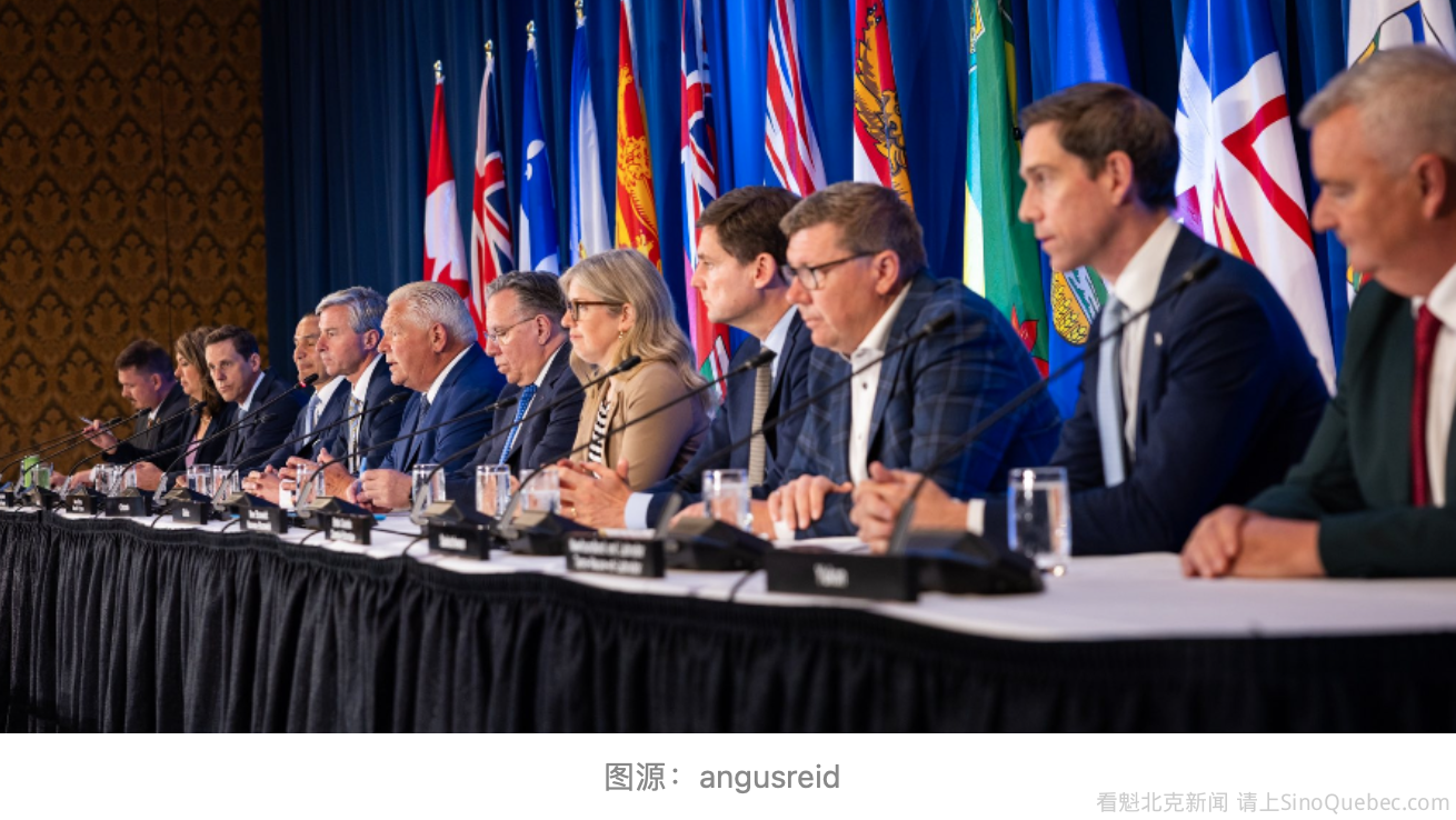 由Angus Reid Institute做的加拿大2025年最终省长支持率评估结果显示:曼省省长Wab Kinew居首,安省省长福特位列倒数第二,魁省省长Francois Legault倒数第一。 在输油管道争议背景下,David Eby(40%)和Danielle Smith(44%)支持率几乎没有下滑。 加拿大各省省长的政治境遇差异明显。一些省长——包括曼尼托巴省的Wab Kinew、新不伦瑞克省的Susan Holt,以及萨斯喀彻温省的Scott Moe——有望在议会休会期间度过一个相对轻松的假期。 而另一些人——尤其是安省的福特和魁北克省的Francois Legault——则可能迎来一个更具狄更斯式反思意味的假期,因为他们在过去几个月里的施政表现遭到选民的高度不满。 对于两位正因阿尔伯塔省—BC省输油管道未来问题而陷入“圣诞争执”的省长来说,公众舆论似乎已暂时冻结,民众显然在观望David Eby和Danielle Smith是否能将言辞转化为实际行动。 注:由于人口规模过小,无法在多轮调查中抽取独立样本,爱德华王子岛省的数据未予发布。 |