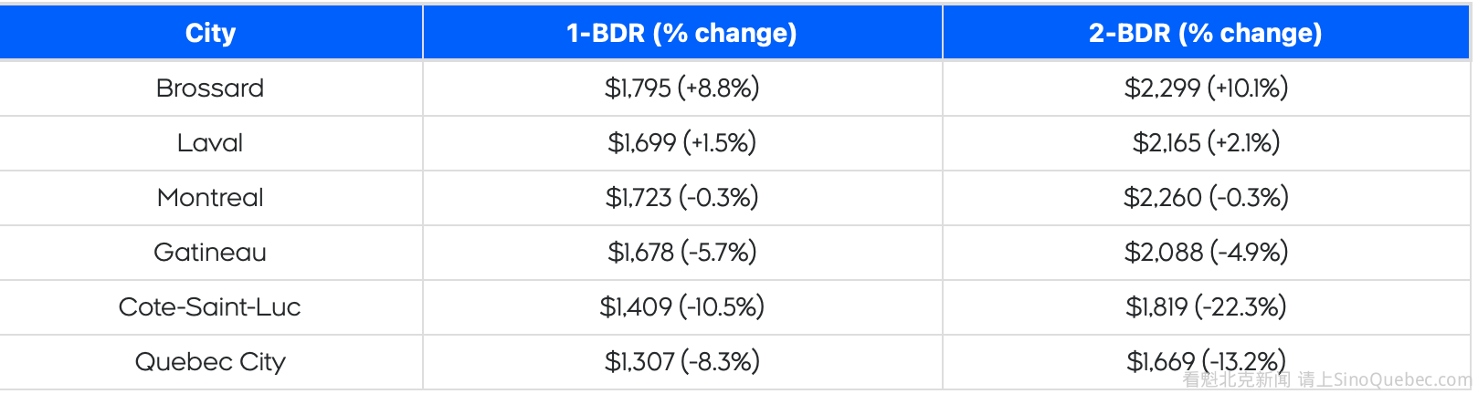 2025 年,魁省的平均租金下降了 2.3%,低于全国平均水平。 这已是魁省平均租金连续第二年出现下降。 根据年度租金报告,魁省的平均租金为 1,937 元,比全国平均水平 2,060 元低出 100 多元。 自 2024 年初以来,全国平均租金已累计下降 5.4%。 以下为魁省租金最高的城市: 以下为其中部分城市按户型划分的租金情况及年度变化幅度: 尽管过去两年租金累计下降了 1.9%,但数据显示,从三年周期来看,平均租金仍上涨了 7.4%。 以蒙特利尔为例,过去三年租金上涨了 7.5%。 在加拿大六大主要租赁市场中,按租金水平比较,蒙特利尔位居第五,高于 Edmonton,但低于 Calgary、渥太华、多伦多和温哥华。 在魁省,一居室公寓的平均租金为 1,428 元,比全国平均水平 1,582 元低 100 多元。 魁省其他户型的平均租金如下(括号内为全国平均水平): 一居室:1,694 元(1,798 元) 两居室:2,168 元(2,166 元) 三居室:2,651 元(2,501 元) Urbanation 总裁 Shaun Hildebrand 解释称,2022 年至 2024 年期间推高租金的供需因素在去年发生了逆转,原因包括公寓完工量创下新高、人口增长放缓、经济不确定性增加,以及住房可负担性压力加剧。 |