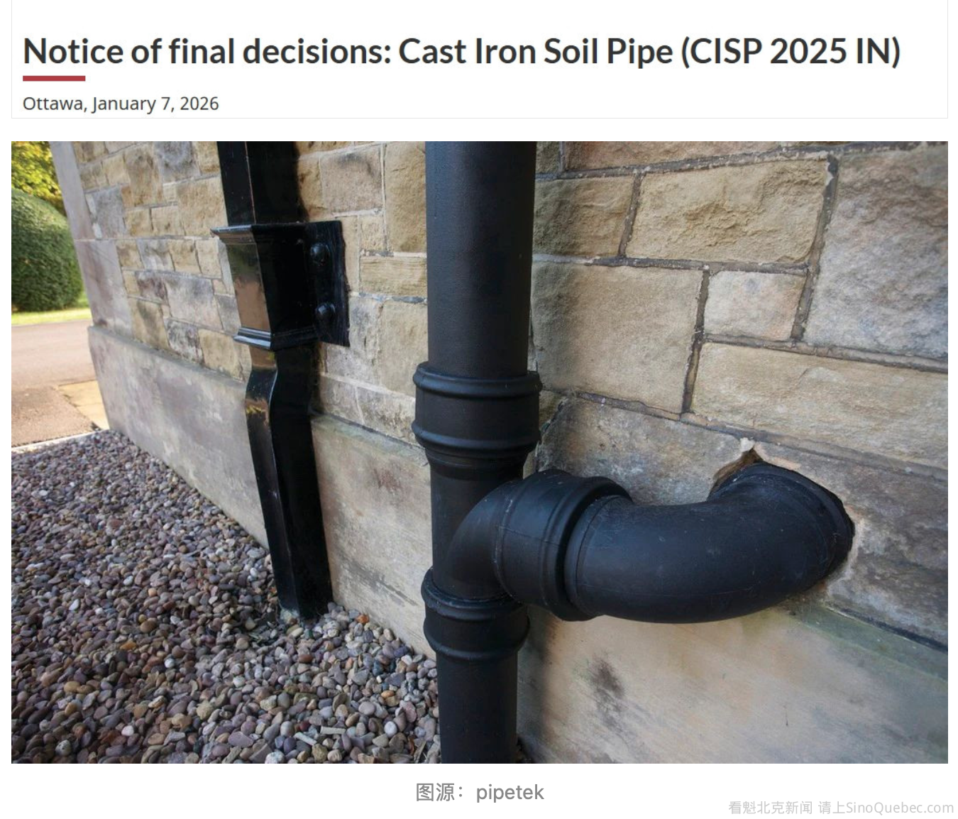 加拿大边境服务局最新裁定,中国出口至加拿大的铸铁排水管存在倾销和补贴行为,相关产品将面临高额反倾销和反补贴税。该案后续是否构成对加拿大本国产业的实质性损害,将由加拿大国际贸易法庭作出最终裁决。 加拿大边境服务局(CBSA)于2026年1月7日发布公告,根据《特殊进口措施法》(SIMA)作出最终裁定,确认原产于或出口自中国的铸铁排水管(Cast Iron Soil Pipe,简称 CISP) 存在倾销和补贴行为。 CBSA表示,经调查认定,中国出口商向加拿大市场销售相关产品的价格明显低于正常价值,同时还获得政府补贴,构成不公平贸易。 涉案产品 此次裁定适用于多种铸铁排水管产品,通常归类于以下税则号项下: 7303.00.00.10 7303.00.00.90 CBSA指出,税则号仅供参考,是否适用反倾销和反补贴措施,应以产品的具体定义为准。 倾销与补贴幅度 根据最终裁定,不同中国出口商的倾销幅度差异较大,最高可达444.2%;所有涉案产品的补贴幅度统一认定为28.5%,折合约1,550.44 元人民币/吨。 CBSA强调,倾销幅度并不等同于最终征收的反倾销税率,具体税额仍取决于后续裁决结果。 边境局在公告中称,案件现已移交加拿大国际贸易法庭(CITT)。CITT将继续审查涉案产品是否对加拿大国内相关产业造成实质性损害,预计将在2026年2月6日前作出最终裁定。 在此之前,CBSA将继续对相关中国进口产品征收临时反倾销税和反补贴税。 CBSA表示,此类贸易救济措施旨在维护公平竞争环境,保护加拿大本国产业免受不公平进口冲击。若CITT最终认定存在损害,反倾销和反补贴税将正式生效并长期实施。 目前,网上或社交媒体上传言“加拿大宣布对中国该产品加征472.7%双反关税”的说法。不过,目前官方并未确认对中国铸铁排水管实施“统一的472.7%双反关税”。调查阶段的临时反倾销和反补贴税率因企业不同而有差异,部分可能在数百个百分点,但没有统一固定的数字。最终具体税率还要等加拿大国际贸易法庭的损害裁定结果。 |